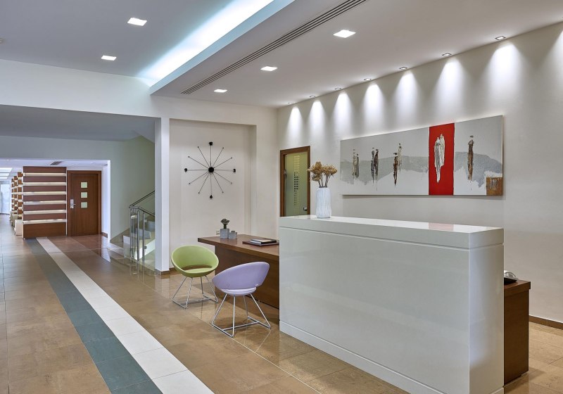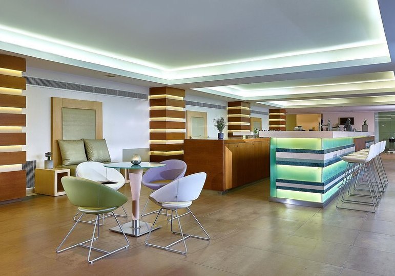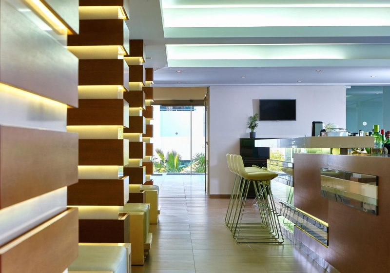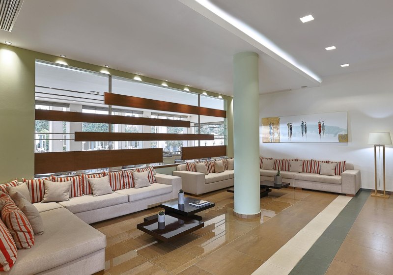 Die öffentlichen Bereiche sind kompakt organisiert: Rezeption, Lobby und Lounge gehen fließend ineinander über. WLAN funktioniert in der gesamten Anlage, zwei Aufzüge erleichtern die Wege. Auf der Sonnenterrasse entspannt Ihr mit bereitstehenden Liegen und Schirmen am Pool; Badetücher erhaltet Ihr vor Ort.