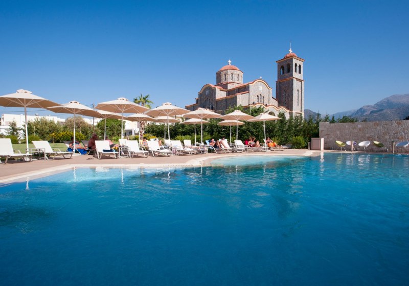 Das Resort liegt in Sissi auf Kreta, ruhig angebunden und doch nah am Geschehen. Rund 150 bis 200 Meter trennen Euch vom Orts- und Touristenzentrum, eine Bushaltestelle befindet sich direkt vor dem Hotel. Zum Sand-/Kiesstrand sind es etwa 350 Meter, dort findet Ihr eine Strandbar.