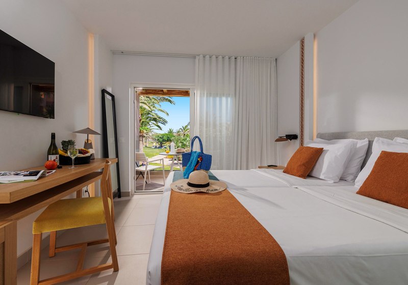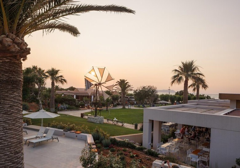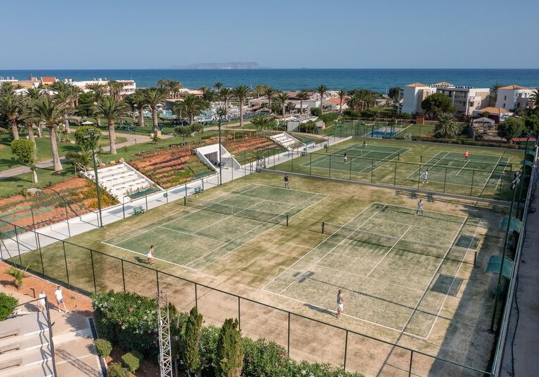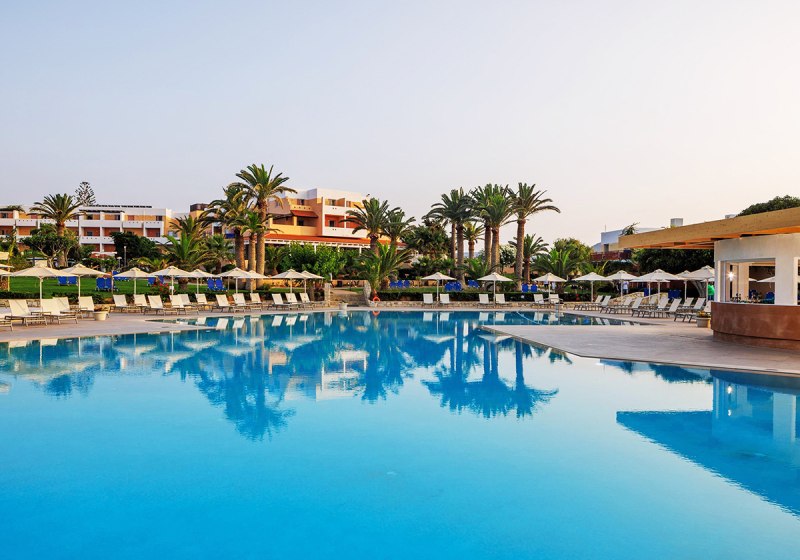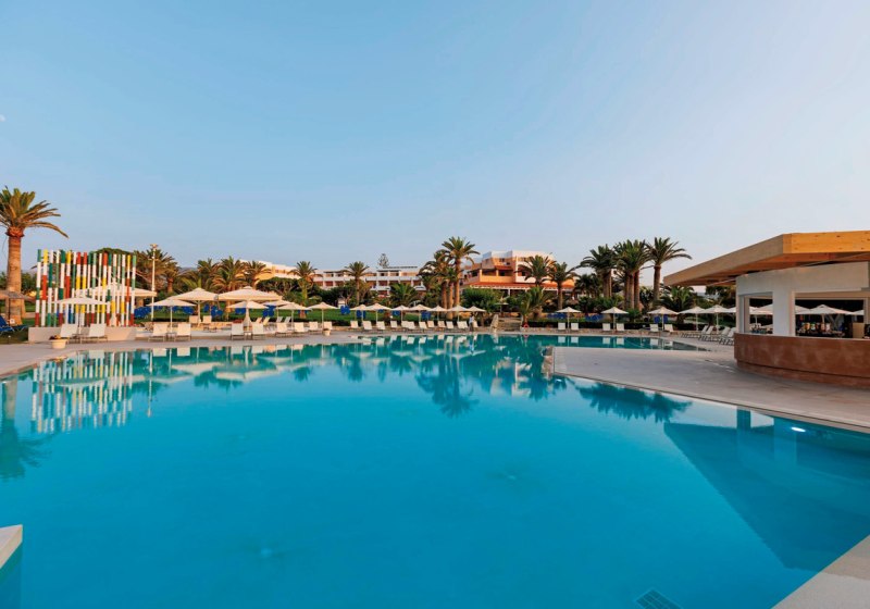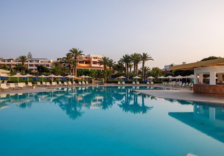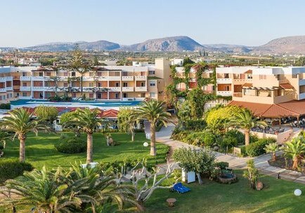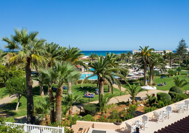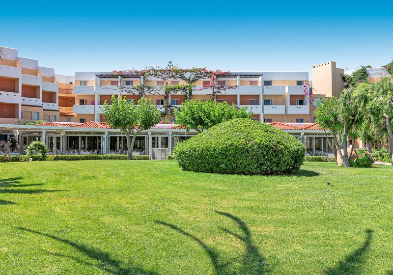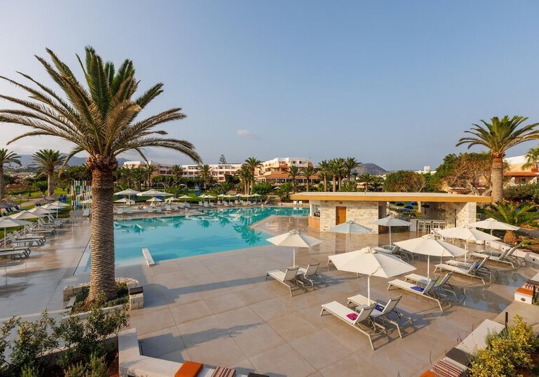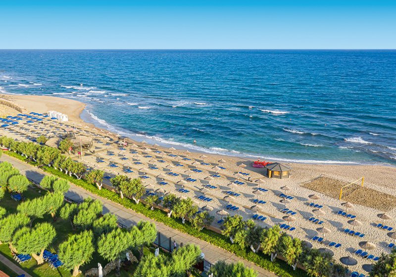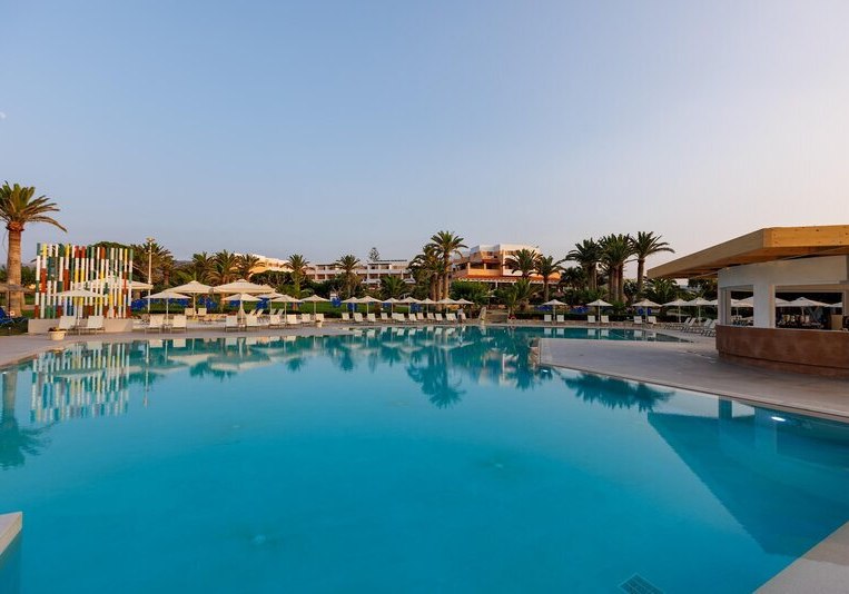 Im Anissa Beach & Village Hotel wohnt Ihr direkt am Sand- und Kiesstrand von Anissaras – mit kurzen Wegen vom Zimmer zum Wasser, viel Platz im Garten und einer Atmosphäre, die zwischen gelassenem Strandgefühl und lebendiger Resort-Energie pendelt. Das Haupthaus und das zweistöckige Nebengebäude Knossos rahmen weite Grünflächen, dazwischen ziehen sich Wege zu Pool, Taverne, Bars und den Sportbereichen. So fühlt sich Euer Tag strukturiert, aber frei an: ein klarer Rhythmus aus Meer, Genuss und Bewegung.