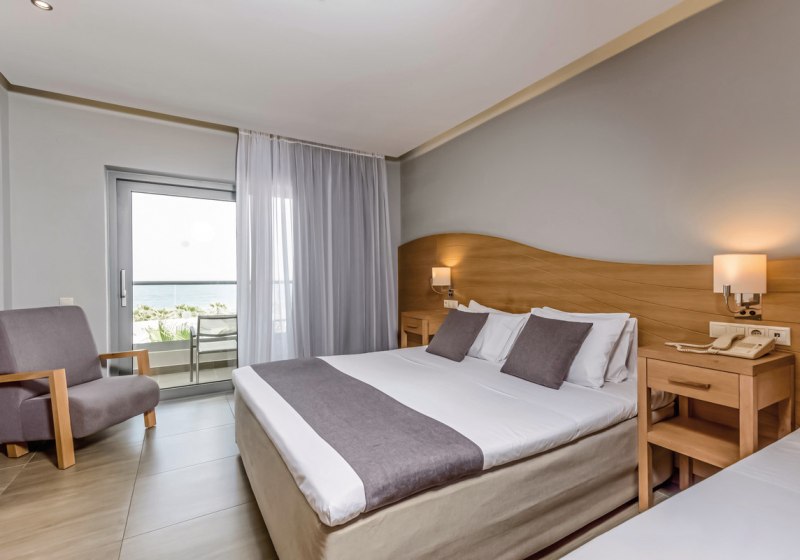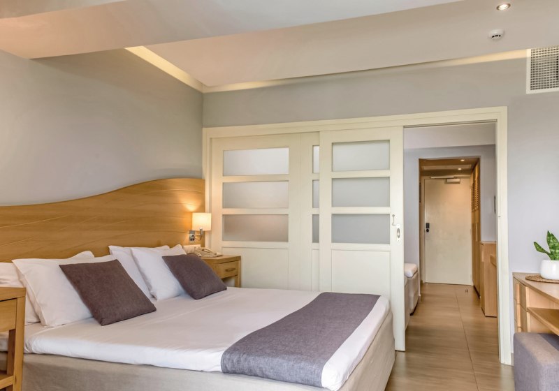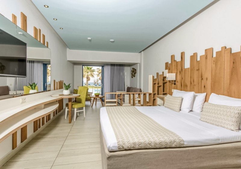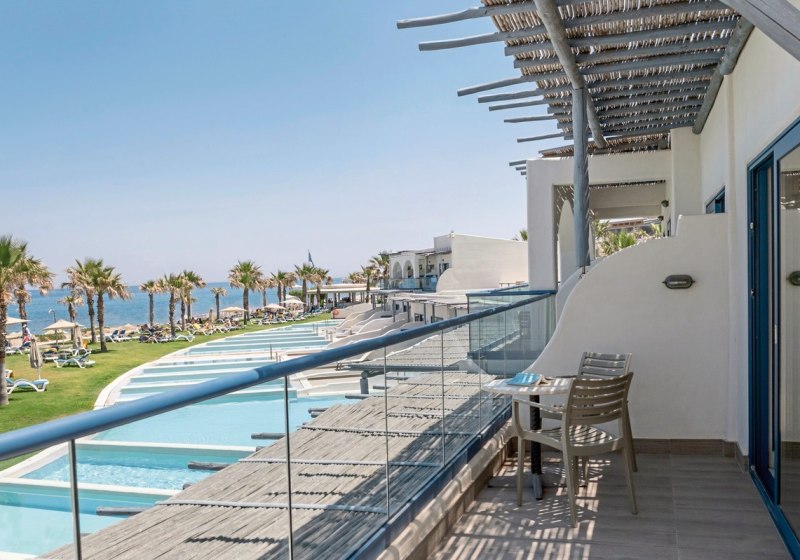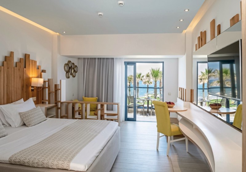 Ihr wählt zwischen Zimmern, Familienzimmern mit separaten Schlafzimmern und einer Suite-Auswahl aus Junior-Suiten und Suiten. Standardmäßig erwarten Euch Dusche, Klimaanlage, Safe, 42-Zoll-LED-Sat-TV, WLAN, Kühlschrank sowie Balkon oder Terrasse. Ausblicke reichen je nach Kategorie bis zu Meer-, Garten- oder Strandblick.