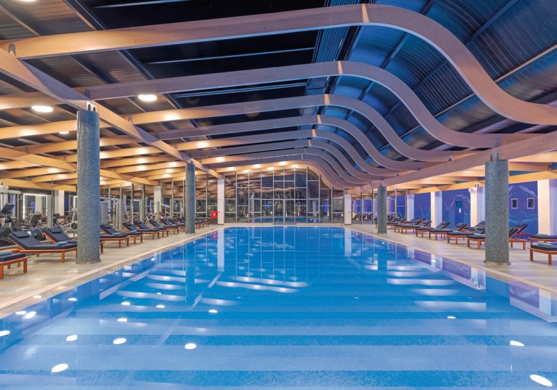 - Pools & Halle: Außenpools und Hallenbad verteilen Schwimm- und Ruheflächen.