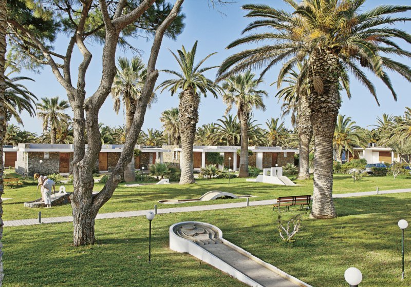 Im Civitel Creta Beach wohnt Ihr in einer weitläufigen Bungalowanlage mit Hauptgebäude und mehreren Bungalows – insgesamt 174 Einheiten, renoviert im Jahr 2024. Der Stil wirkt unprätentiös und luftig; Wege führen durch Gärten hinunter zum Sandstrand von Ammoudara. Sonnenliegen und Schirme stehen am Pool und am Strand bereit, sodass Ihr zwischen Wellenrauschen und Poolwasser wechselt, ohne Abstriche beim Komfort zu machen.