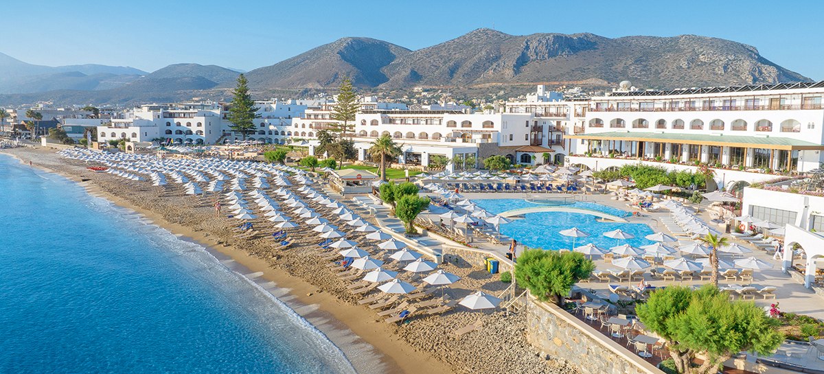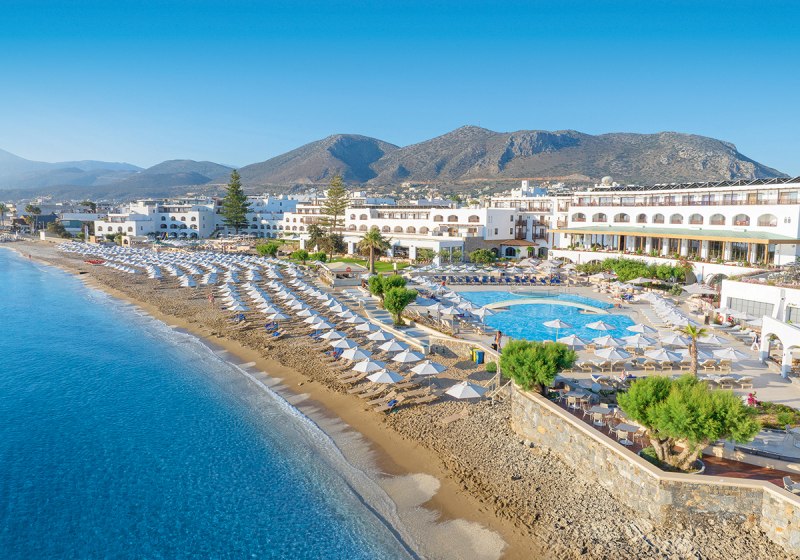 Zwischen Meer und Ort setzt Creta Maris Resort auf Nähe und Übersicht: Ihr wohnt in Hersonissos direkt an einer Sand-/Kiesbucht mit Blauer Flagge, der Flughafen Heraklion liegt etwa 24 km entfernt. In Gehweite erreicht Ihr einen kleinen Hafen, Einkaufsstraßen sowie Bars und Tavernen – ideal, wenn Ihr nach dem Strand bummeln möchtet. Das Stadtzentrum liegt rund 500 m entfernt, die Wege sind kurz und praxisnah. So pendelt Ihr mühelos zwischen Strandliegen, Poolbereichen und dem lebhaften Ort. Für Eure An- und Abreise bietet die Lage eine klare Linie: Küste vor der Tür, Stadt um die Ecke, Flughafen in gut erreichbarer Distanz – ohne lange Transfers, ohne Umwege.