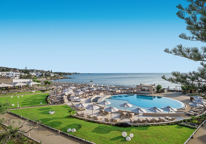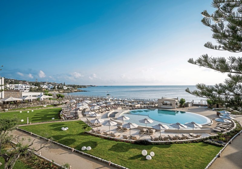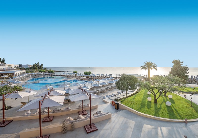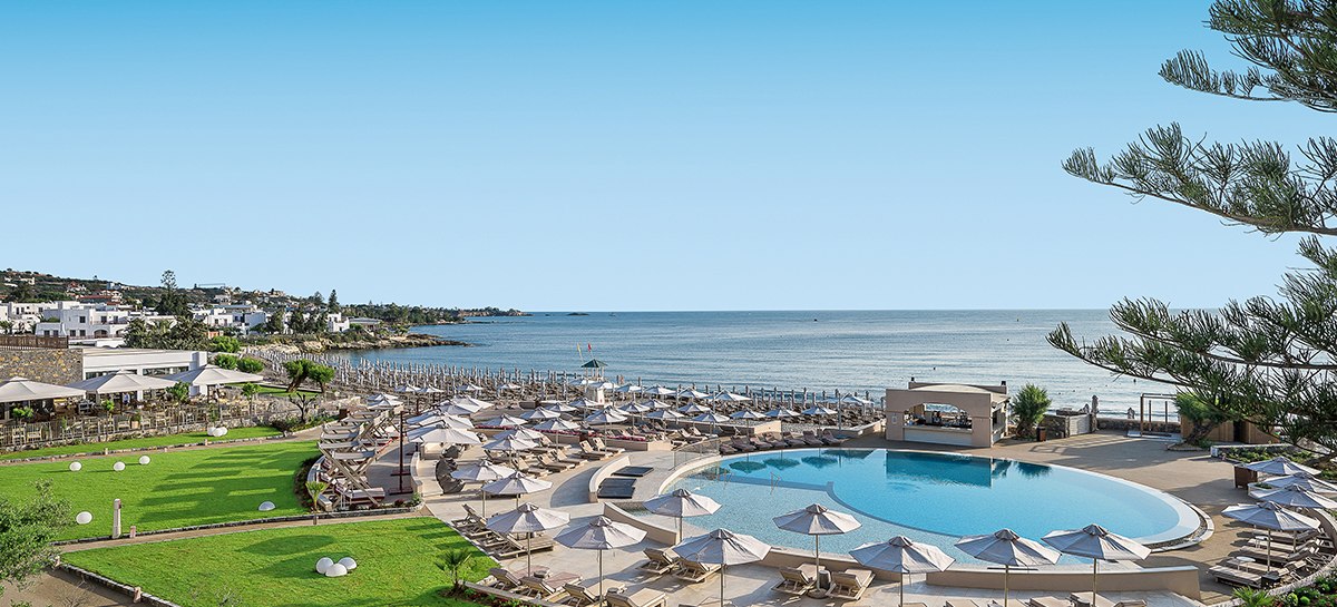 Creta Maris Resort kombiniert direkte Strandlage, viel Wasserfläche und starke Kulinarik mit einer klaren Struktur für Familien und Paare. Der Wasserpark, 17 Pools und das Freilichtkino setzen lebendige Akzente, der Adults‑only Bereich sorgt für ruhige Zonen. All‑Inclusive, À‑la‑carte und Weinkeller runden den Genuss ab.