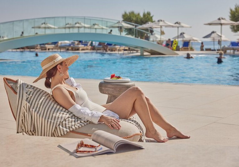 Das Ambiente verbindet Hotelkomfort in zwei Hauptgebäuden mit dem Charme eines Bungalowdorfs. Familien schätzen Familienzimmer und den Wasserpark mit fünf Kinderbecken, Paare den exklusiven Adults‑only Bereich mit separatem Pool- und Strandabschnitt. Abends wechselt Ihr von der Strandbar in das Freilichtkino oder lauscht Live‑Sounds in den Bars. Kulinarisch führen zwei Hauptrestaurants, fünf À‑la‑carte‑Adressen und ein Weinkeller durch den Tag. Highlight: Exklusiver Adults‑only Bereich für entspannte Stunden am Pool und Strand.