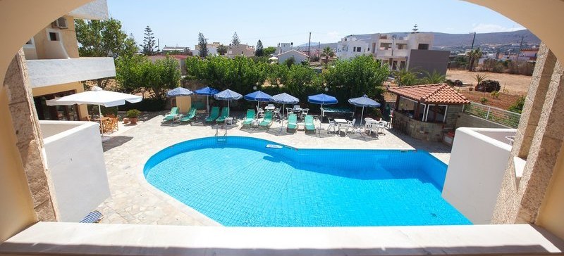 Im Dimitra Hotel & Apartments wohnt Ihr in einem überschaubaren Haus mit 35 Zimmern, Apartments und Familienzimmern. Der Blick reicht in vielen Unterkünften über das Meer, die Wege sind kurz, der Garten mit Sonnenterrasse und Liegestühlen wirkt ruhig. Der Außenpool setzt den klaren Mittelpunkt, bevor Ihr nach wenigen Schritten den Strand erreicht.