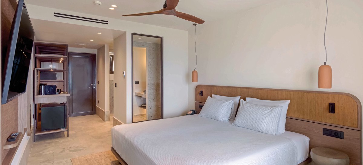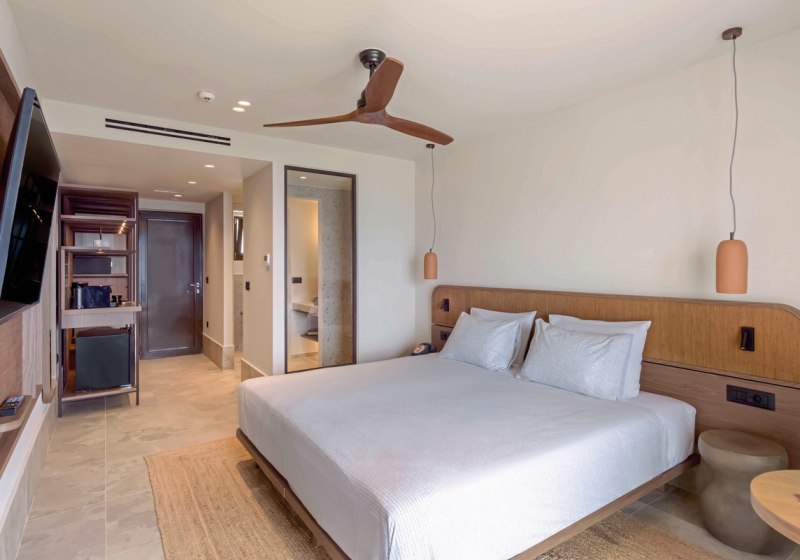 Für mehr Platz wählt Ihr Familienzimmer mit separatem Wohn-/Schlafraum und Meerblick. Wer die Bungalow-Atmosphäre schätzt, greift zu Bungalow Superior mit Meerblick im Bungalowgebäude. So entscheidet Ihr zwischen klassischem Haupthaus und Bungalowstil – jeweils mit klaren Linien, praktischen Details und dem Blick, der diese Lage prägt.
