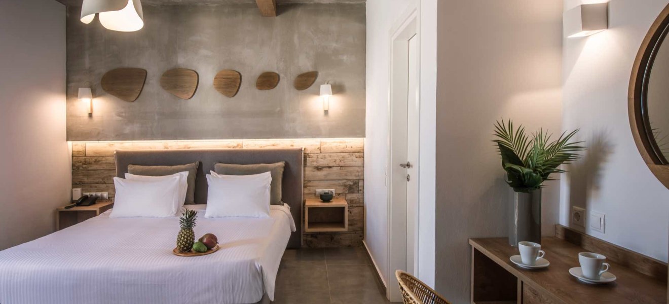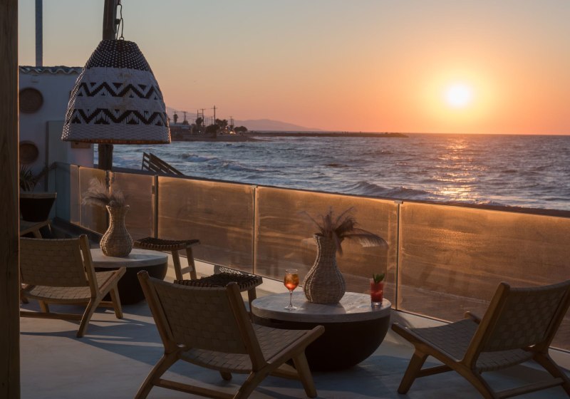Im Enorme Maya Beach wohnt Ihr in einem überschaubaren Adults-only-Haus ab 16 Jahren mit 70 Zimmern und klarer Ausrichtung auf Ruhe, Strandnähe und gutes Essen. Der Blick über die Bucht von Gouves prägt die Atmosphäre, der Poolbereich mit Liegen und Gazebos setzt entspannte Akzente. Hier fühlt sich der Aufenthalt strukturiert an: kurze Wege, aufmerksamer Service, viel Raum für Paare und Freund:innen, die ungestört entspannen möchten.