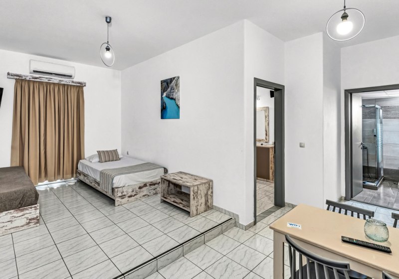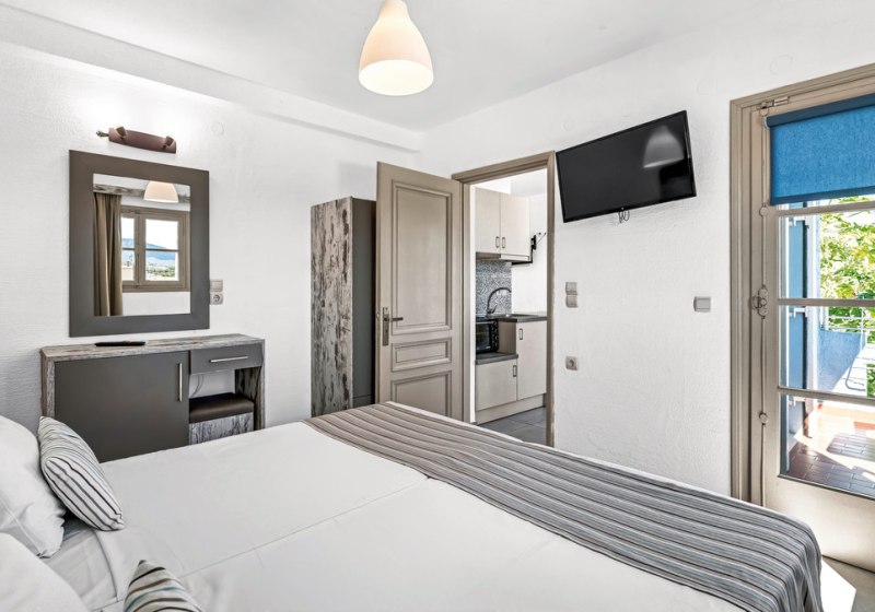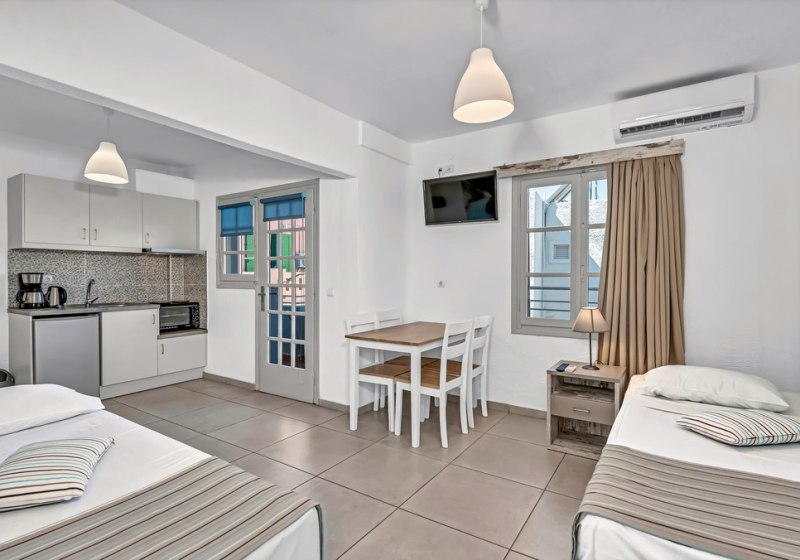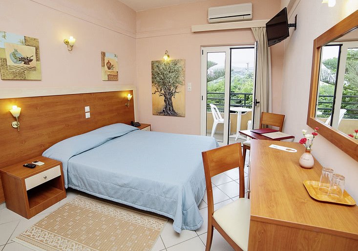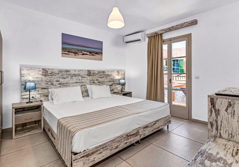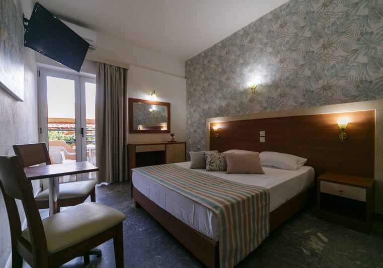 In den Doppelzimmern des Erato Hotel erwartet Euch ein klarer Zuschnitt mit Dusche/WC, Föhn, Telefon, Klimaanlage, Minikühlschrank, Sat-TV und Musikfunktion. Wertgegenstände verstaut Ihr im Mietsafe. Ein Balkon oder eine Terrasse eröffnet zusätzlichen Außenraum. Wer kompakt reist, wählt Einzelzimmer in ähnlicher Ausstattung, jedoch ohne Balkon oder Terrasse. Highlight: Doppelzimmer mit Außenbereich zum kurzen Rückzug nach Strand oder Pool.