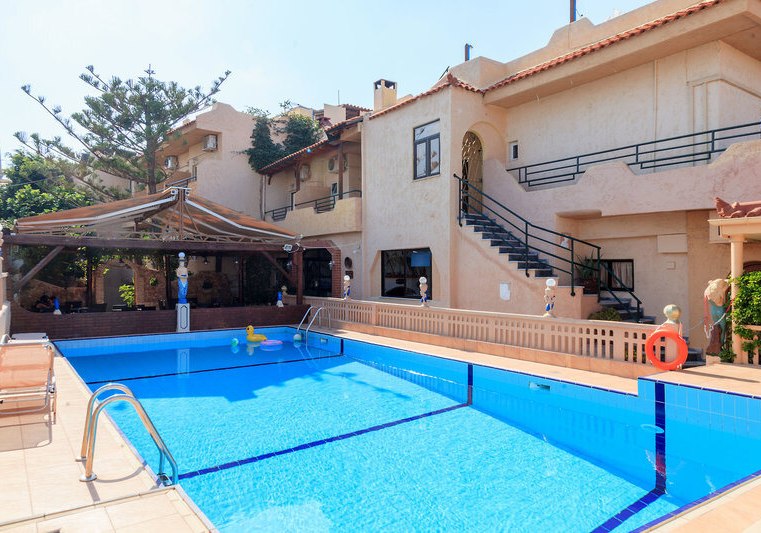 Für Paare wirkt das Haus angenehm gelassen, Familien schätzen den Kinderspielplatz und die unkomplizierte Atmosphäre. Abends sorgen kretische Livemusik-Momente punktuell für Stimmung, ohne den Charakter eines entspannten Strandhotels zu übertönen. Offiziell mit 3 Sternen und laut Daten 2021 renoviert, präsentiert sich Erato Hotel aufgeräumt, ohne Schnickschnack. Haustiere sind nicht erlaubt; die Unterkunft ist nicht barrierefrei ausgewiesen. Sonnenschirme und Liegen am Pool laden zum Innehalten ein, während Ihr Eure Tage zwischen Meer, Terrasse und kleinen Entdeckungen rhythmisiert. Highlight: Ruhige Lage nahe kleiner Sandbuchten, mit bequemer Anbindung für spontane Ausflüge.