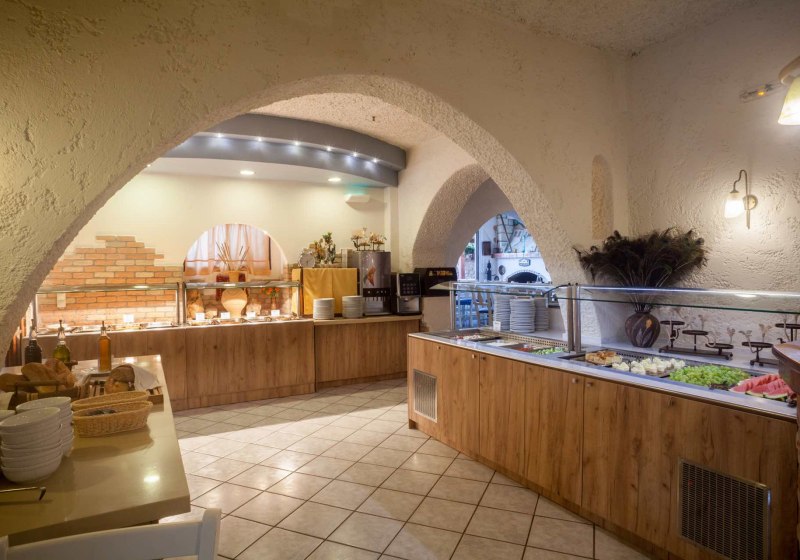 Im Restaurant und in der Bar konzentriert sich die Küche des Erato Hotel auf verlässliche Buffet-Mahlzeiten und kurze Wege. Morgens und abends wählt Ihr am Buffet; dazu stehen alkoholfreie und alkoholische Getränke bereit. Wer flexibler plant, nutzt Optionen von Übernachtung mit Frühstück bis Halb- oder Vollpension, ergänzt um Mittagessen und Snacks. Highlight: Frühstücks- und Abendbuffet mit klarer Auswahl und unkompliziertem Ablauf.