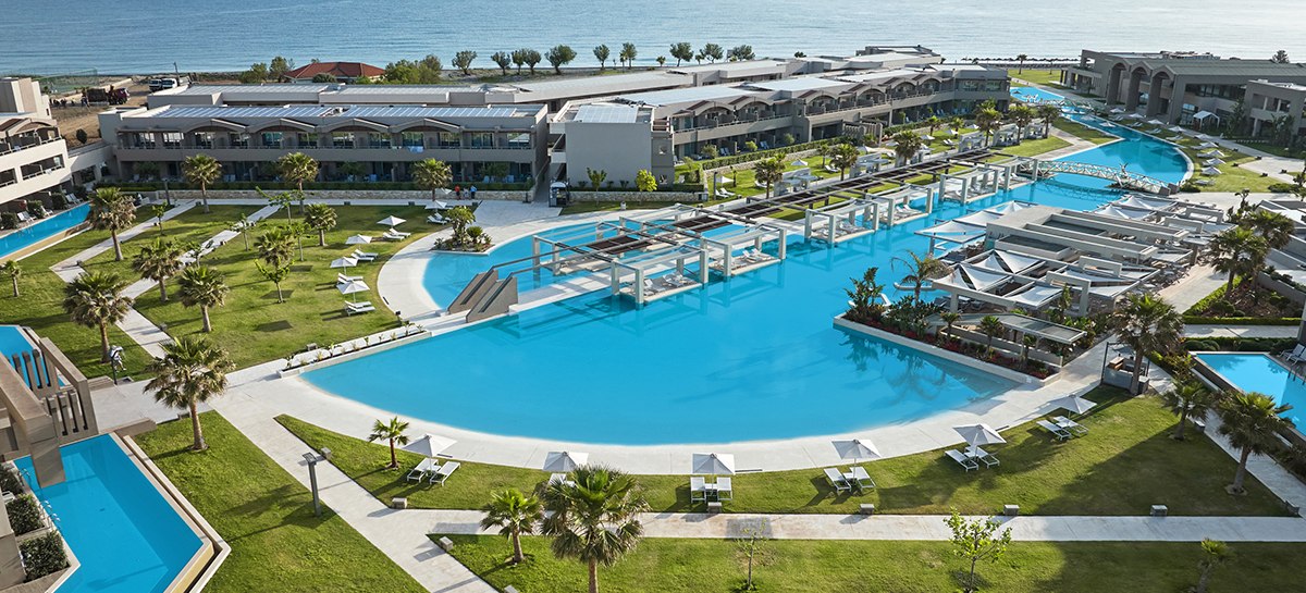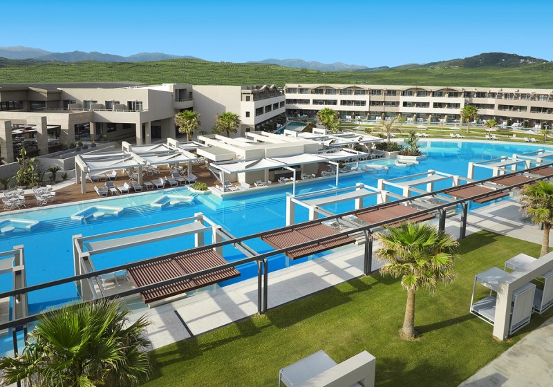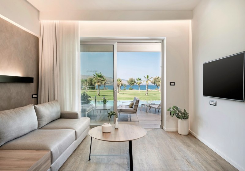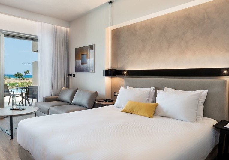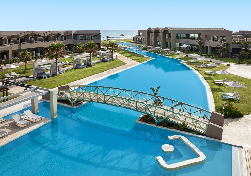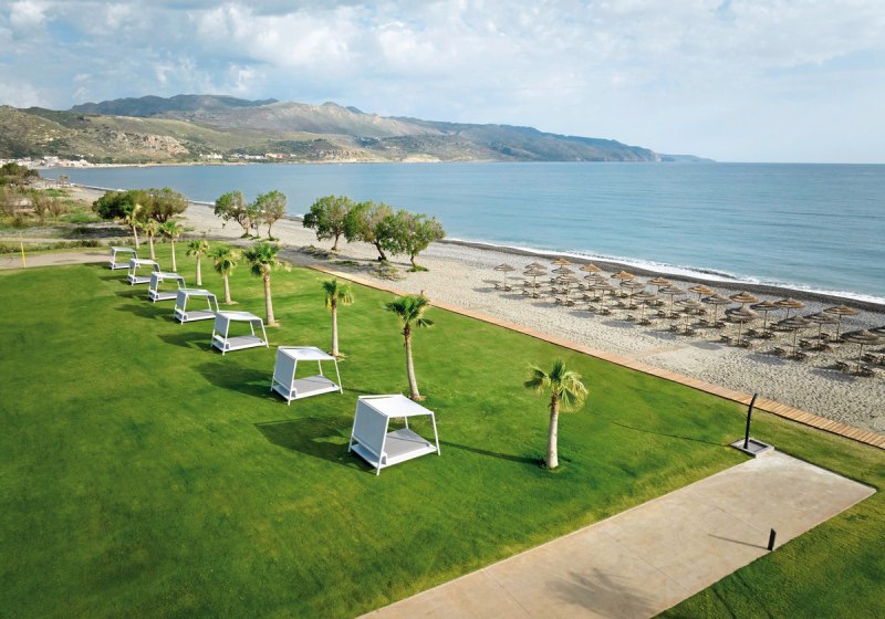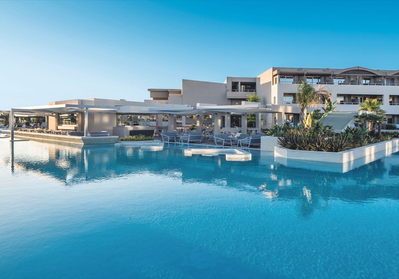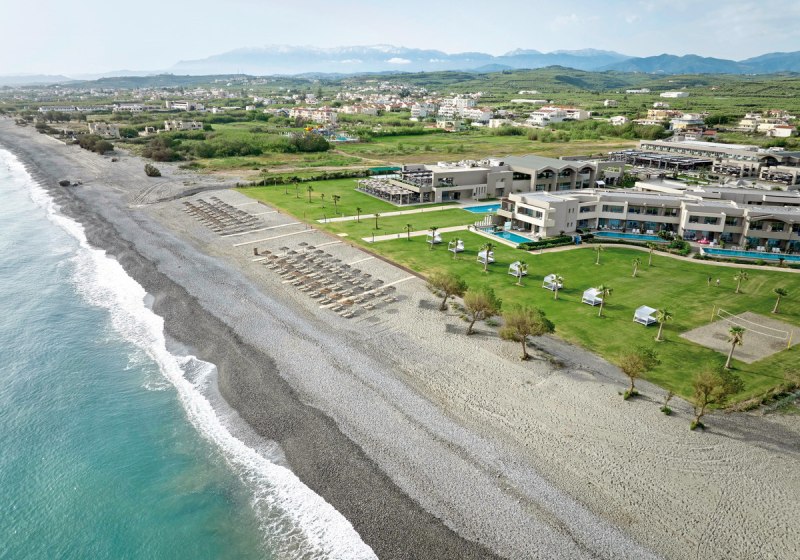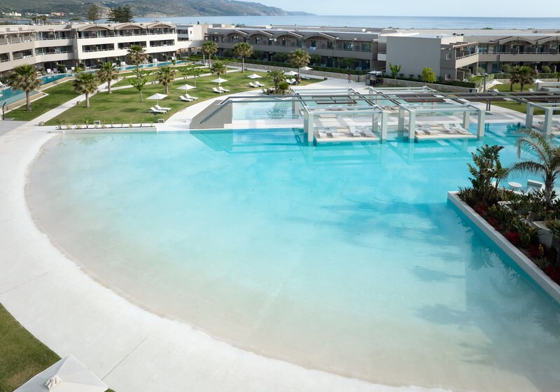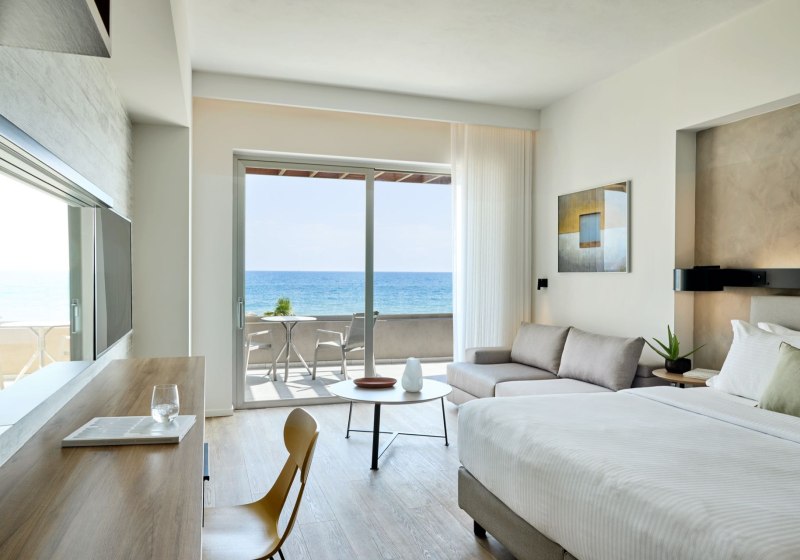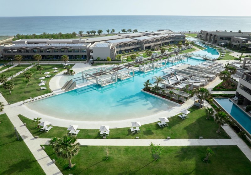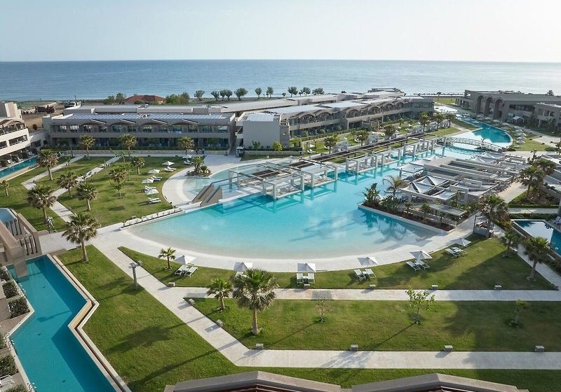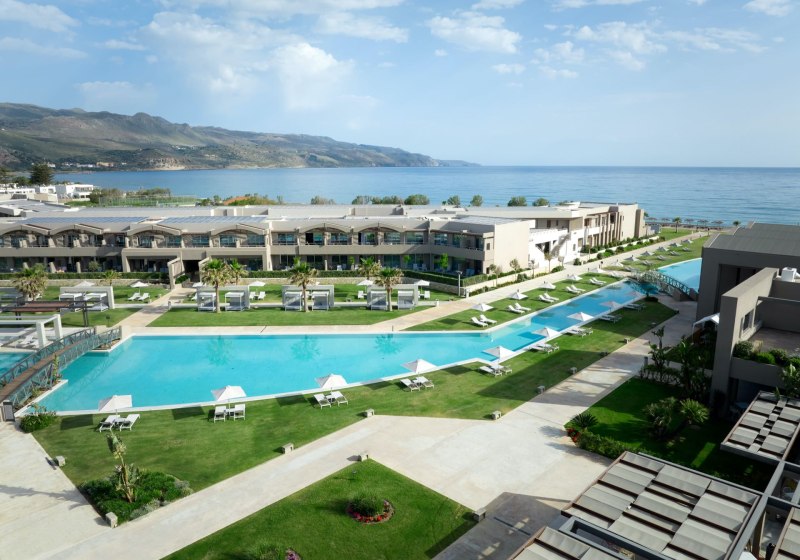 Im Euphoria Resort wohnt Ihr in einer weitläufigen Anlage direkt am Strand von Kolymbari. Klare Linien, großzügige Außenbereiche und eine weitverzweigte Poollandschaft prägen die Szenerie. Familien finden mit Wasserpark, Miniclub und Kinderpool viel Abwechslung, während Paare Ruhezonen, das Spa und den Strand schätzen. All das wirkt durchdacht organisiert, mit kurzen Wegen und gut strukturierten Bereichen. Highlight: Direkte Strandlage mit großflächiger Poollandschaft und eigenem Wasserpark.