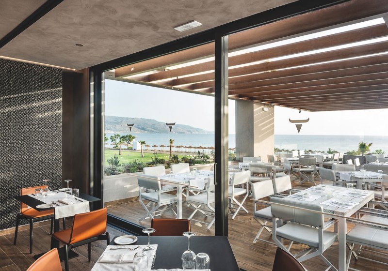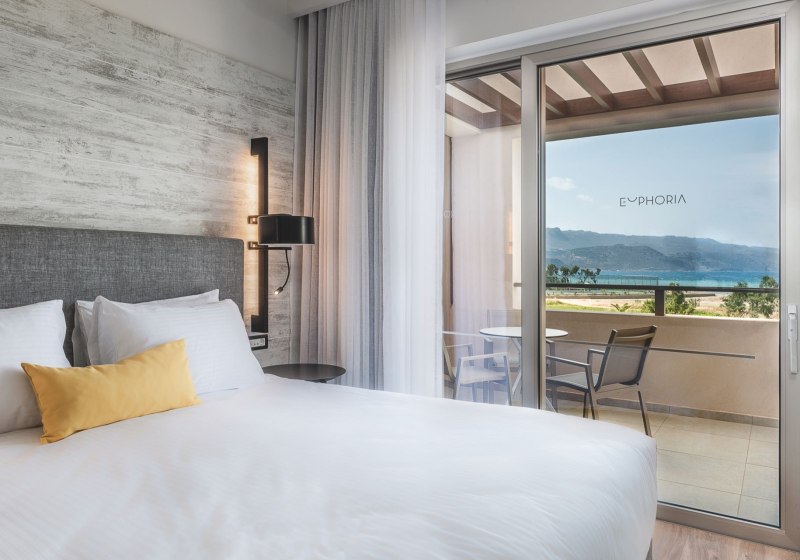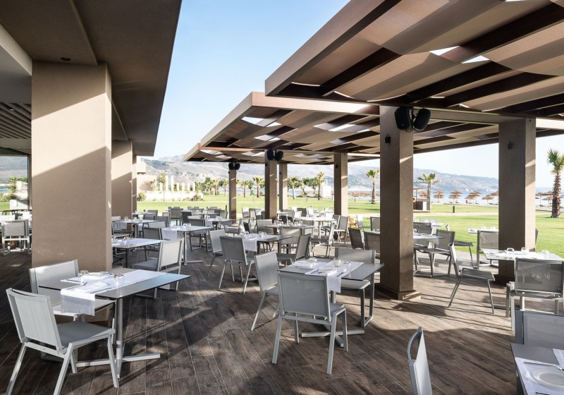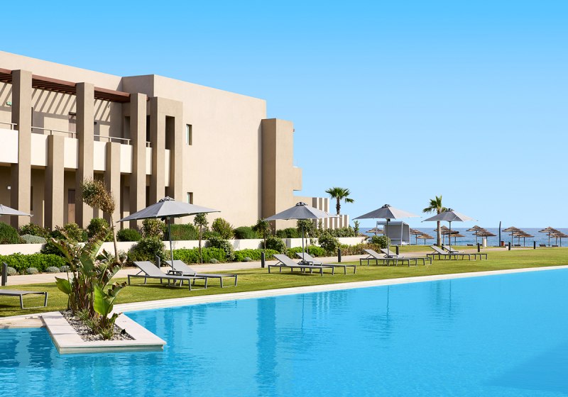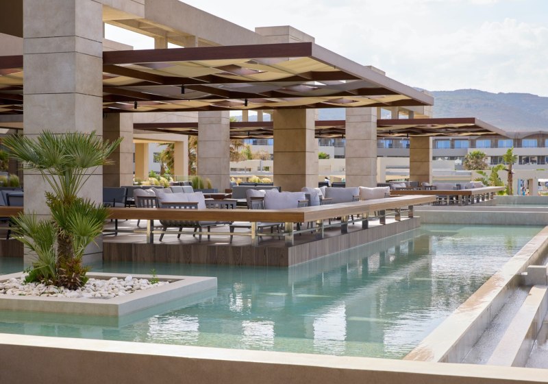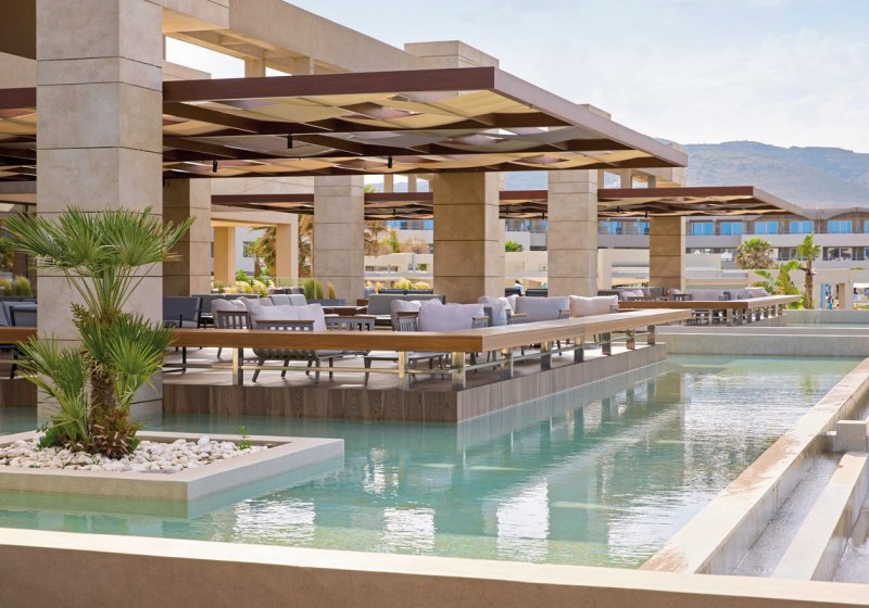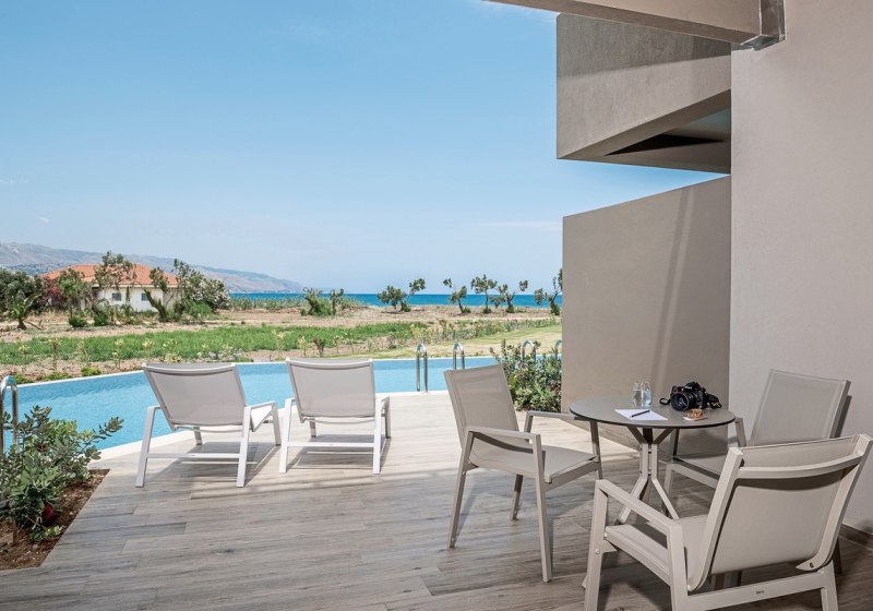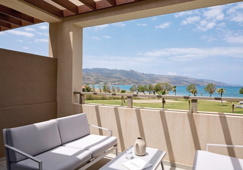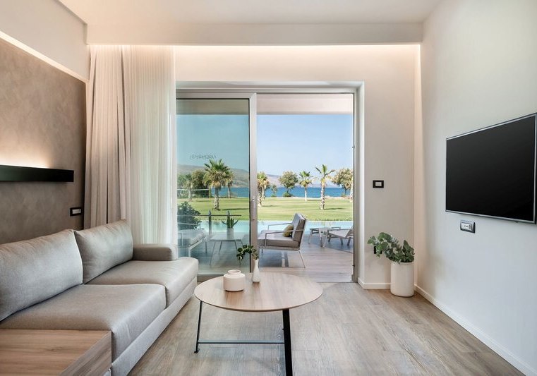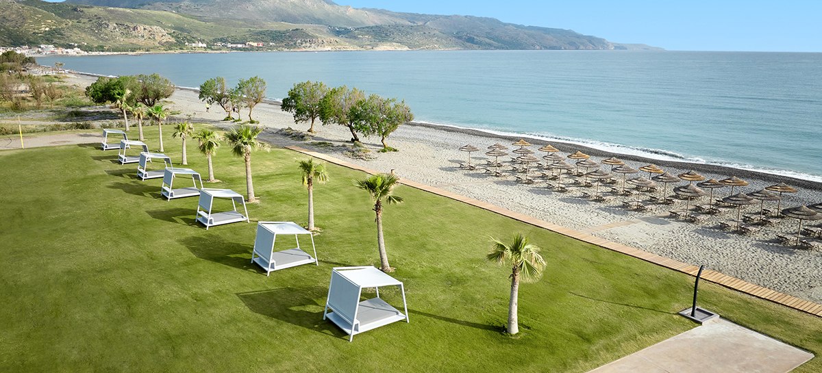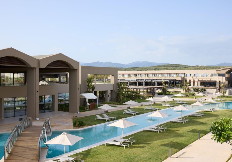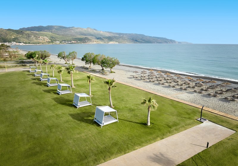 Im Euphoria Resort wohnt Ihr in einer weitläufigen Anlage direkt am Strand von Kolymbari. Klare Linien, großzügige Außenbereiche und eine weitverzweigte Poollandschaft prägen die Szenerie. Familien finden mit Wasserpark, Miniclub und Kinderpool viel Abwechslung, während Paare Ruhezonen, das Spa und den Strand schätzen. All das wirkt durchdacht organisiert, mit kurzen Wegen und gut strukturierten Bereichen. Highlight: Direkte Strandlage mit großflächiger Poollandschaft und eigenem Wasserpark.