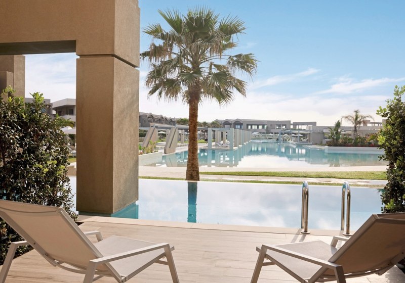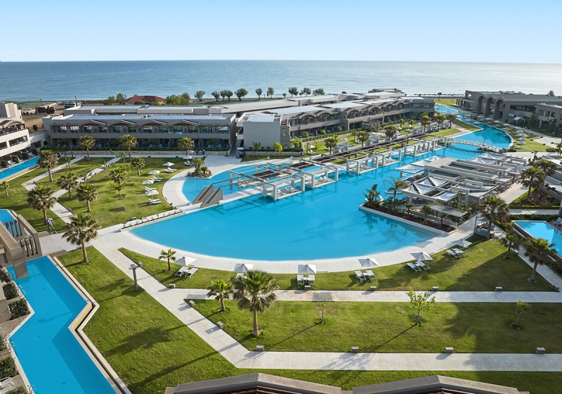 Die Anlage umfasst 344 Zimmer und Suiten, eine großzügige Empfangshalle mit Rezeption sowie kostenloses WLAN. Die weitläufige Swimmingpool-Landschaft bildet das Herzstück, Sonnenliegen und Schirme stehen am Pool und am Strand bereit. Für Kinder gibt es einen separaten Pool und einen Spielplatz; Babybetten sind auf Anfrage erhältlich, Babysitting wird gegen Gebühr angeboten.