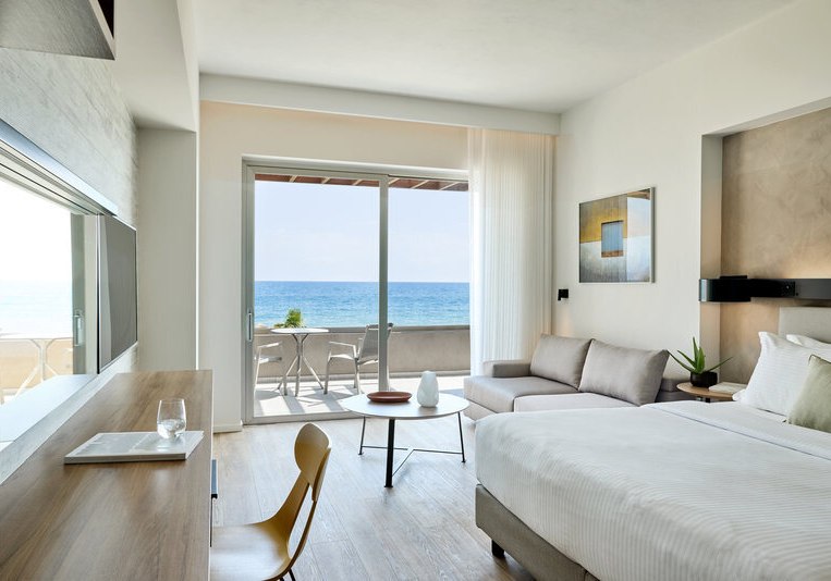 Sport, Pools und Strand sind mit Liegen und Schirmen bestens organisiert, die Zimmerauswahl ist mit Meerblick- und Sharing-Pool-Varianten vielseitig. Mit hervorragenden Bewertungen in Service, Essen, Zimmern, Sport und Hotelgefühl findet Ihr hier eine zuverlässige Adresse für den Urlaub auf Kreta.