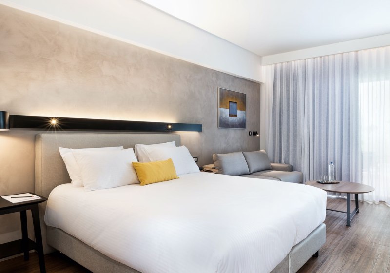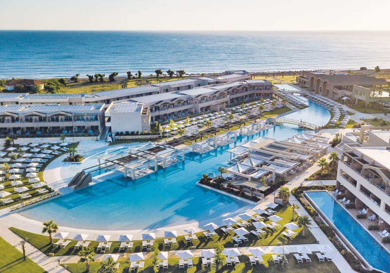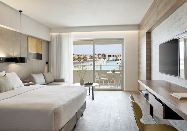 Die 344 Zimmer und Suiten sind auf Komfort ausgerichtet und eröffnen je nach Kategorie Pool-, seitlichen oder direkten Meerblick. Kulinarisch erwartet Euch neben dem Hauptrestaurant eine Auswahl an Themen- und À-la-carte-Restaurants, ergänzt von Bars und der Snackbar „Souvlucky“. Sportlich bleibt Ihr im Fitnessstudio, auf den Tennisplätzen oder bei Beachvolleyball in Bewegung, während Kanus am Strand für Abwechslung sorgen. WLAN ist inklusive, Sonnenliegen und Schirme stehen am Pool und am Strand bereit. Highlight: Klare Struktur für Familien und Paare – Spiel, Sport, Genuss und Rückzug greifen stimmig ineinander.