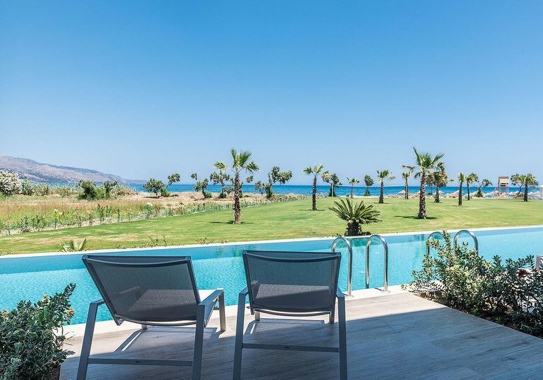- Strandlage: Direkt am Sand-/Kiesstrand von Kolymbari gelegen.