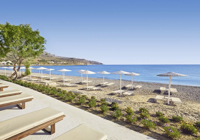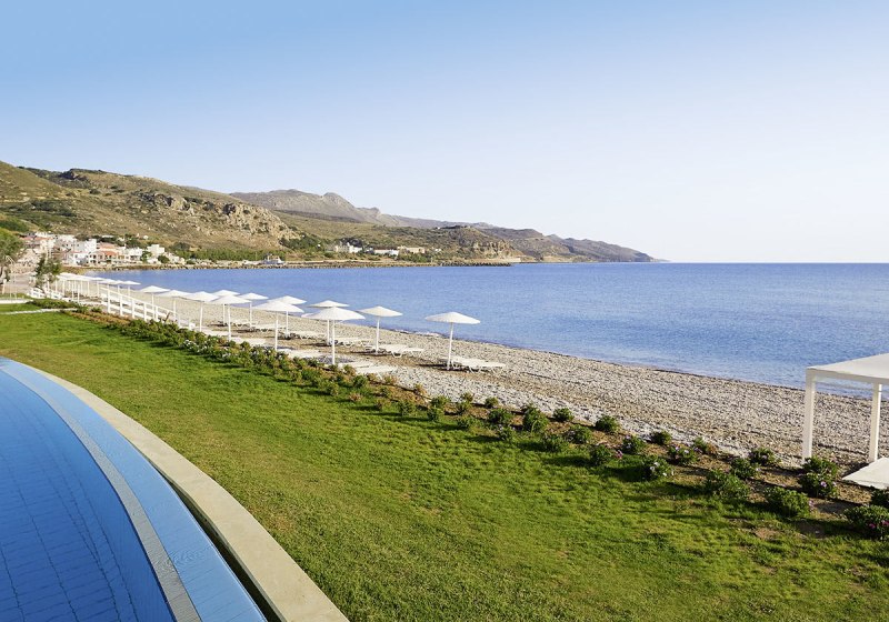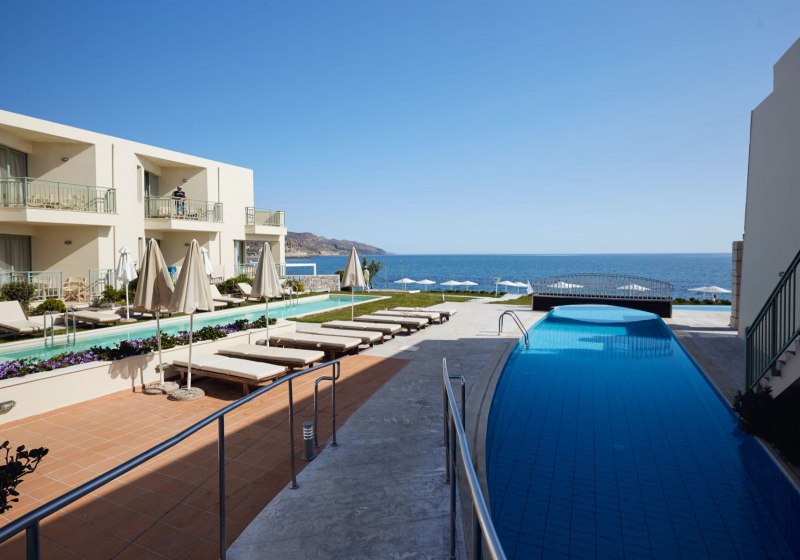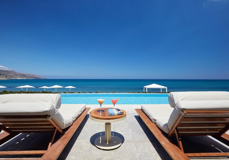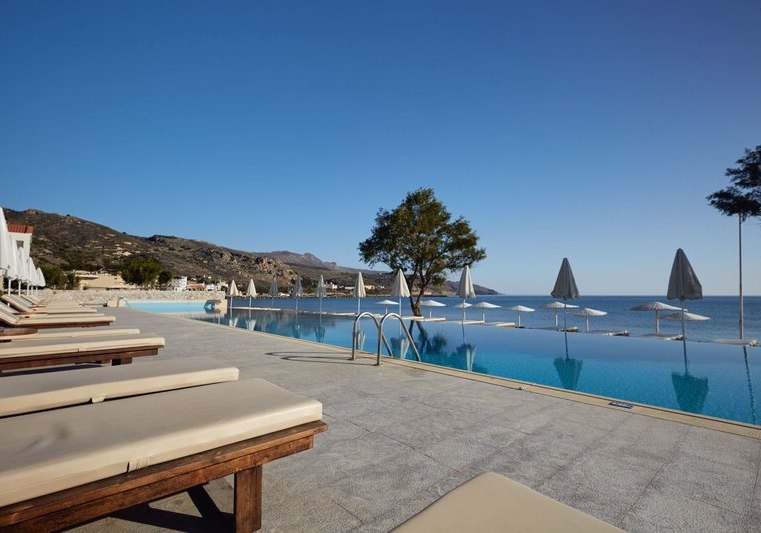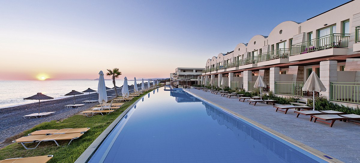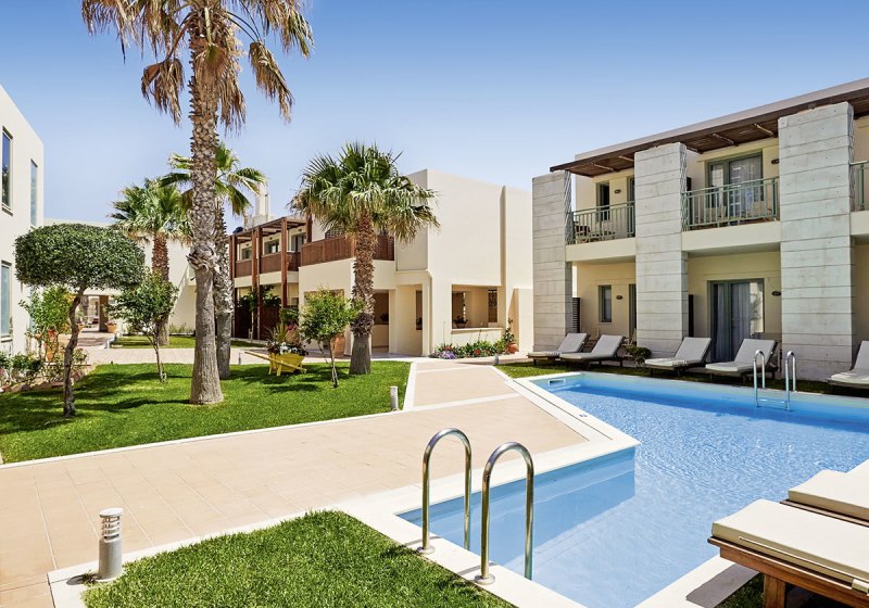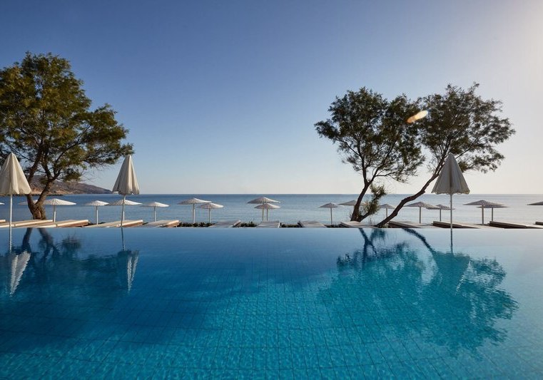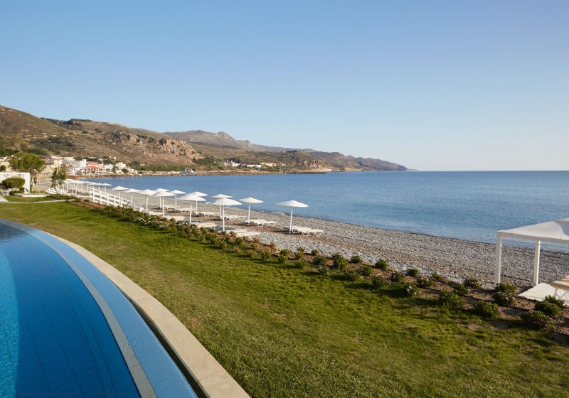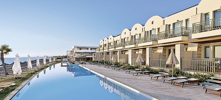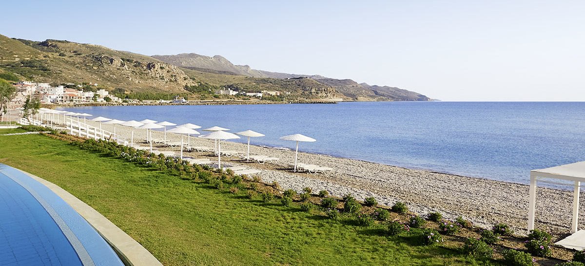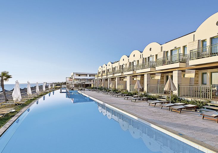 Grand Bay Beach Resort steht für Adults-only-Ruhe direkt am Strand von Kolymbari, mit vier Außenpools, klarer Service-Struktur und vielseitiger Küche vom Buffet bis À-la-carte. Die Lage verbindet Strandnähe mit kurzen Wegen, Chania liegt rund 25 Kilometer entfernt.