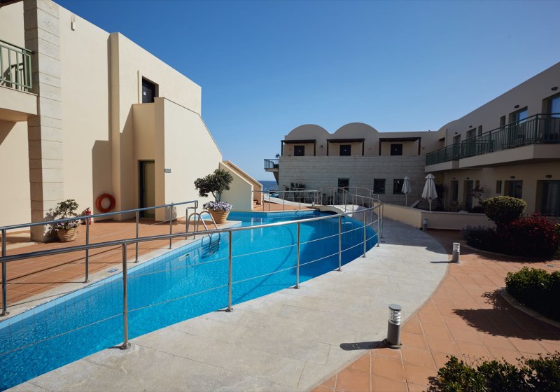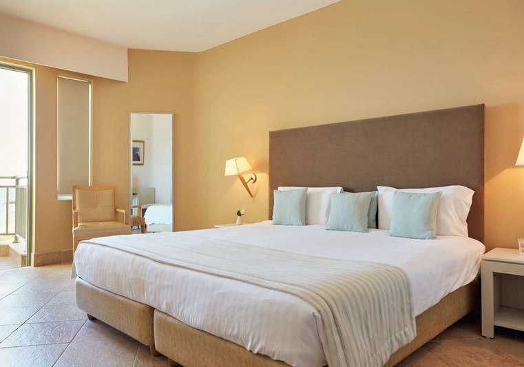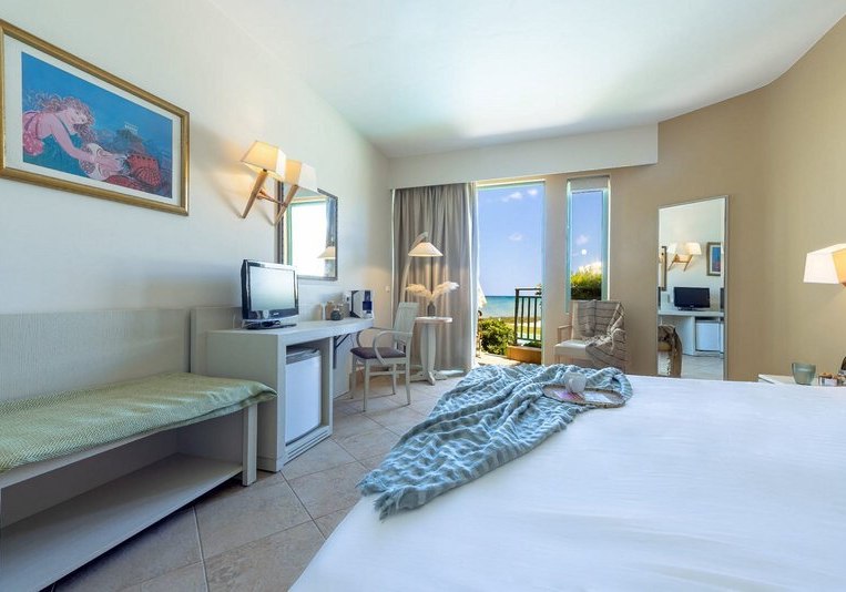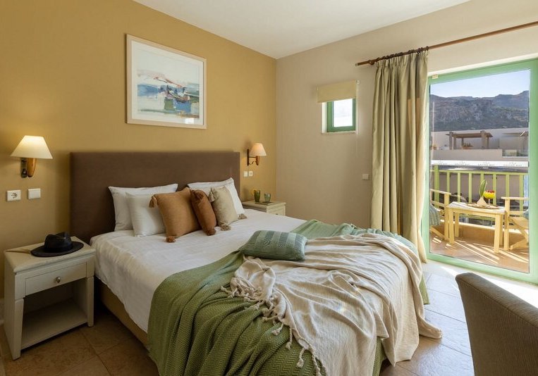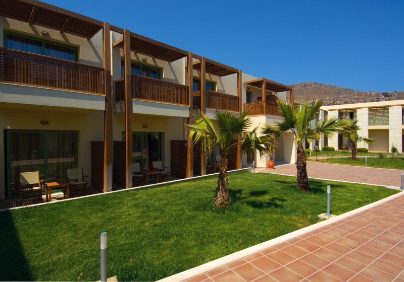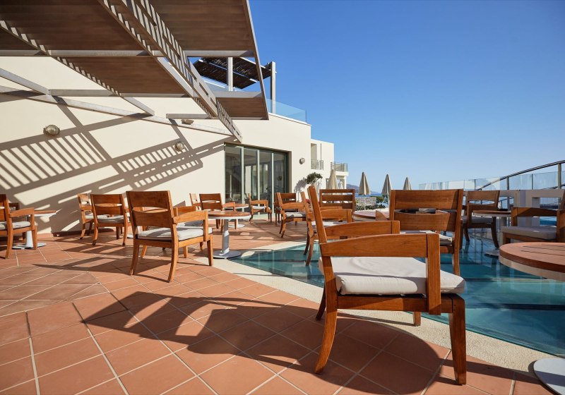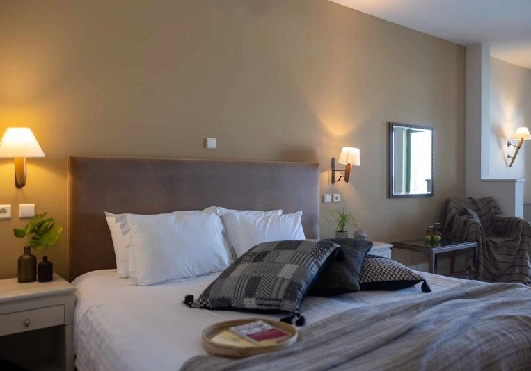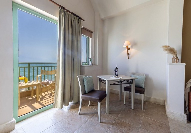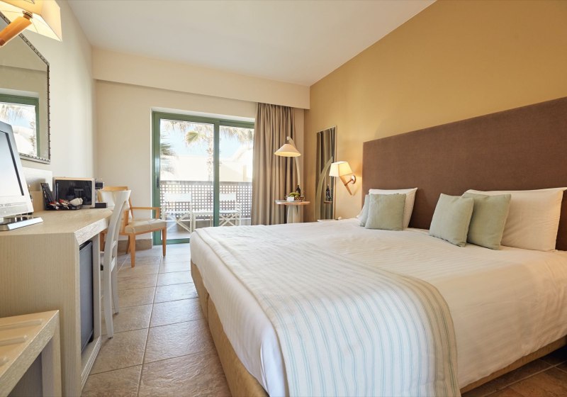 Ihr wohnt in Doppelzimmern, Juniorsuiten oder Suiten – alle mit Klimaanlage, Sat-TV, Marmorbad und Balkon oder Terrasse. Einige Kategorien bieten Meerblick, andere einen Sharing-Pool für den direkten Sprung ins Wasser. Das Design folgt klarer Funktionalität mit soliden Materialien.
