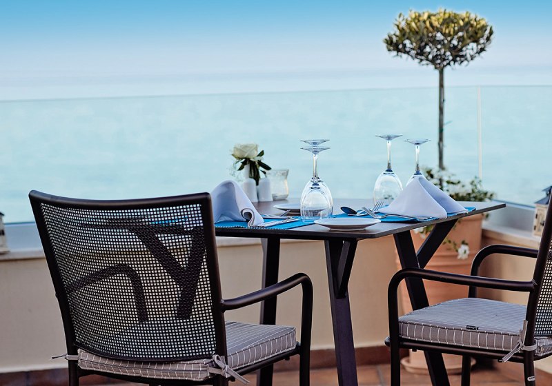 Ihr esst flexibel: Buffetrestaurant mit Live-Kochen und zwei À-la-carte-Adressen – Azzuro sowie die Sea Line Taverne. Die Verpflegungsoptionen reichen von Frühstück über Halbpension bis All-Inclusive mit alkoholischen und alkoholfreien Getränken, Snacks und speziellen Angeboten.