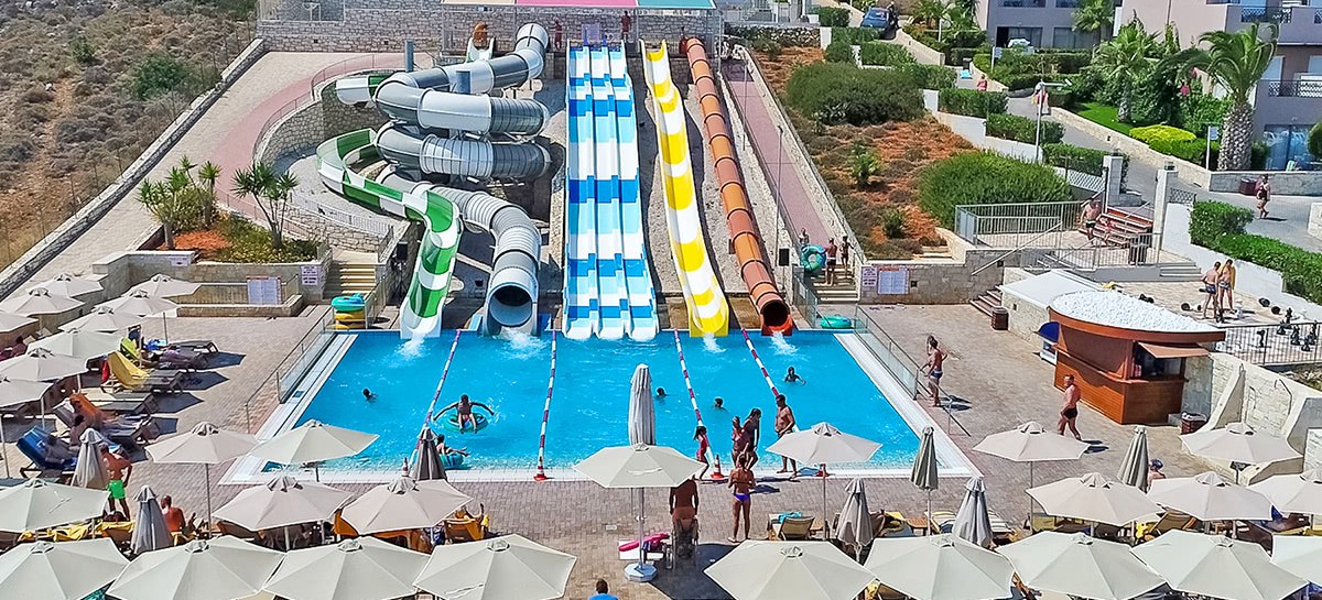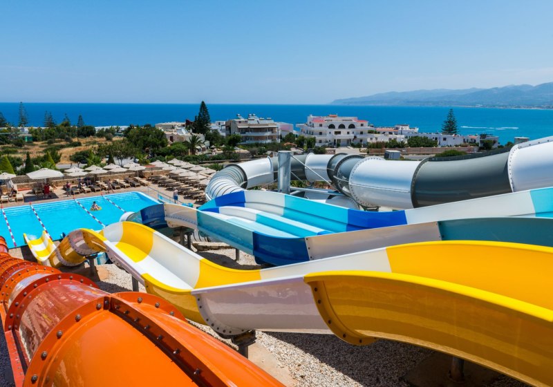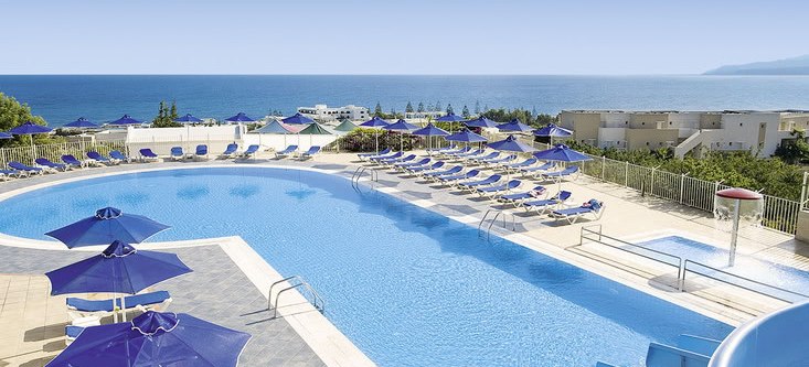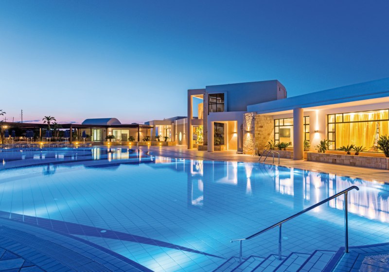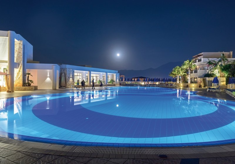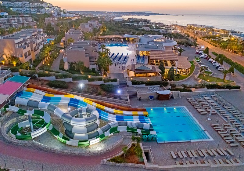 Das Grand Hotel Holiday Resort kombiniert eine vielseitige Poollandschaft mit Aquapark und Adults-Only-Bereich, kurzen Wegen zum Strand Stalida und klaren Gastronomieoptionen vom Buffet bis zu griechischen und italienischen À-la-carte-Restaurants. Familien profitieren von Mini-Club, Außenspielbereich und Familienzimmern mit getrennten Schlafräumen.