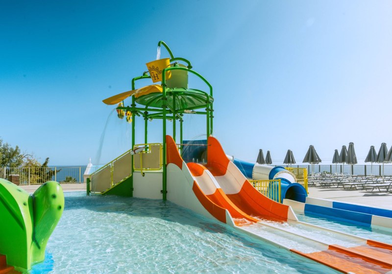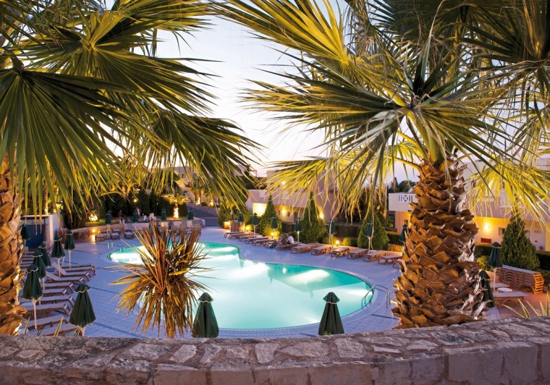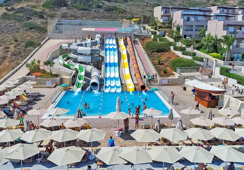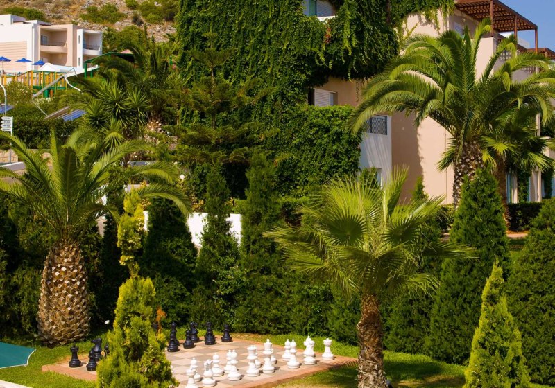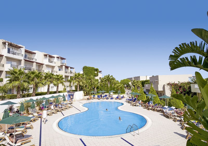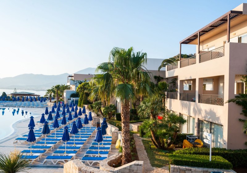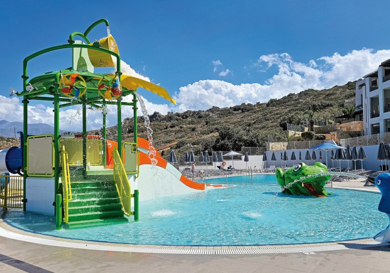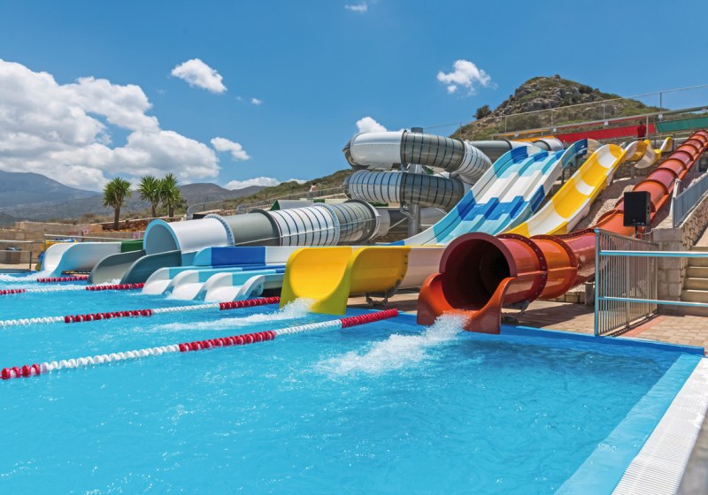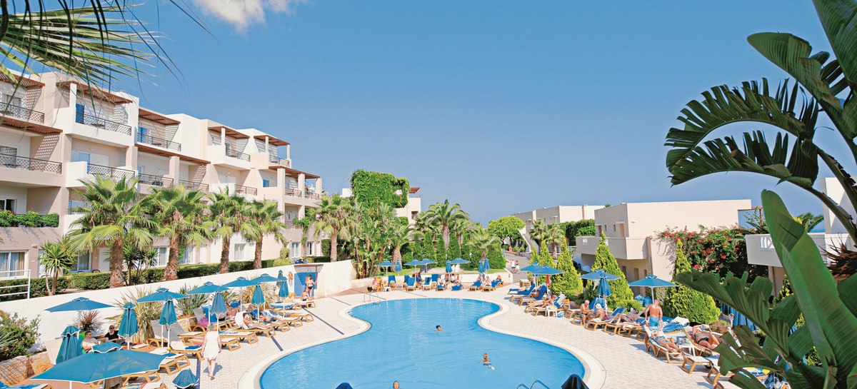 Im Grand Hotel Holiday Resort erlebt Ihr ein Resort, das Euch mit klar strukturierten Bereichen und viel Raum für unterschiedliche Bedürfnisse empfängt. Familien steuern den Aquapark mit Wasserrutschen und den Kinderpool an, während Ihr am Adults-Only-Pool bewusst zur Ruhe kommt. Über Wege zwischen Hauptpool, Sonnenterrasse und Lobby verteilt sich das Geschehen angenehm. Der Blick wechselt zwischen Gartenflächen und dem Blau der Pools, während Ihr Euch dank Beach-Shuttle flexibel zwischen Resort und Strand Stalida bewegt. Highlight: Vielseitige Poollandschaft mit Aquapark und Adults-Only-Bereich, klar voneinander getrennt.