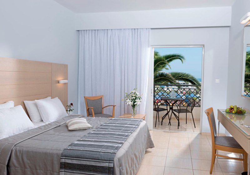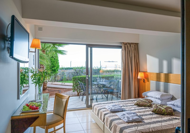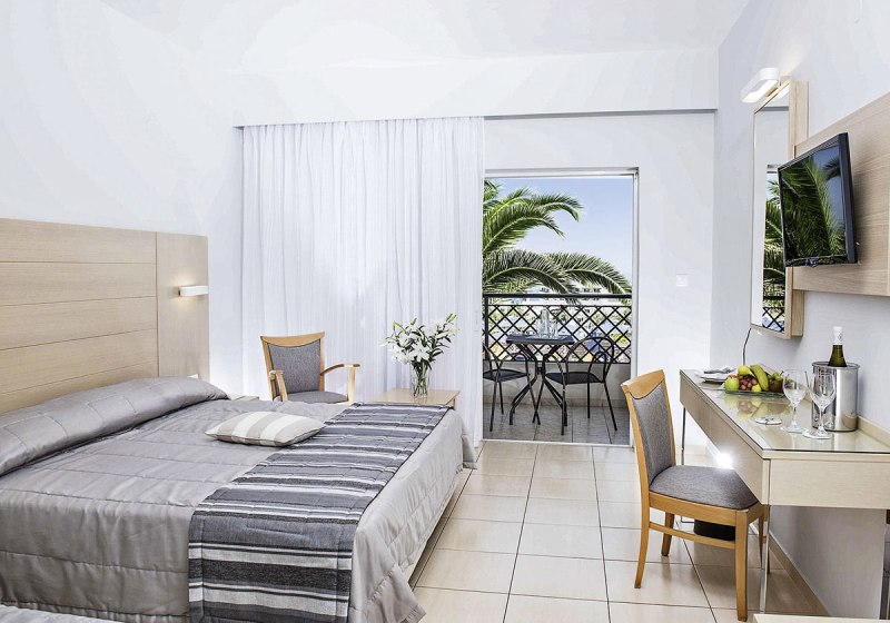 Eure Zimmer bieten die Essentials für einen entspannten Aufenthalt: Bad mit WC, Föhn und Pflegeprodukten, dazu Telefon, Sat-TV, WLAN, Kühlschrank und Mietsafe. Klimaanlage sorgt für das passende Raumklima, Balkon oder Terrasse erweitern den Platz nach draußen. In ausgewählten Superior-Zimmern blickt Ihr auf das Meer. Highlight: Balkon oder Terrasse geben jedem Zimmer eine klare Außenfläche.