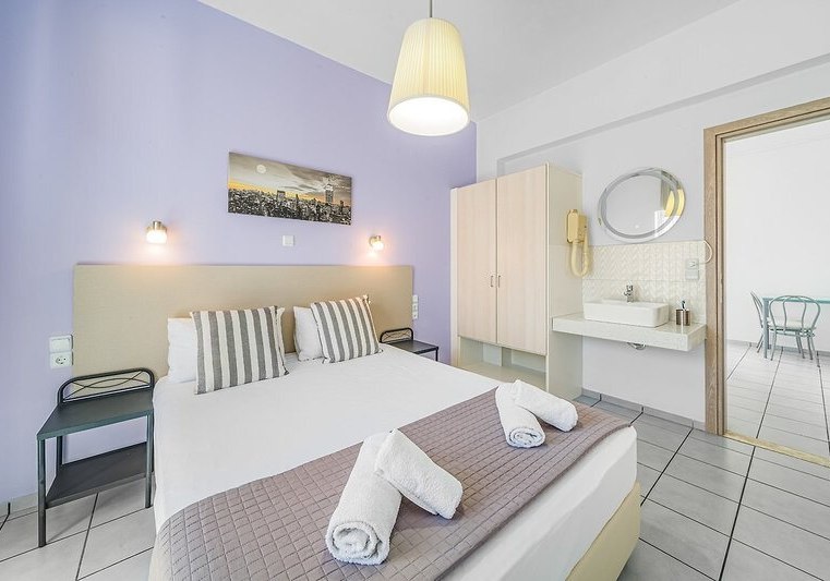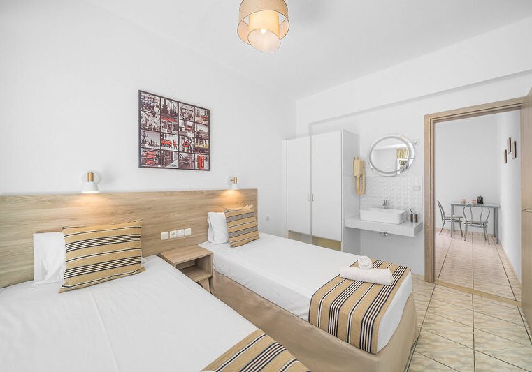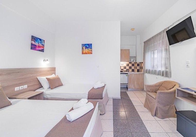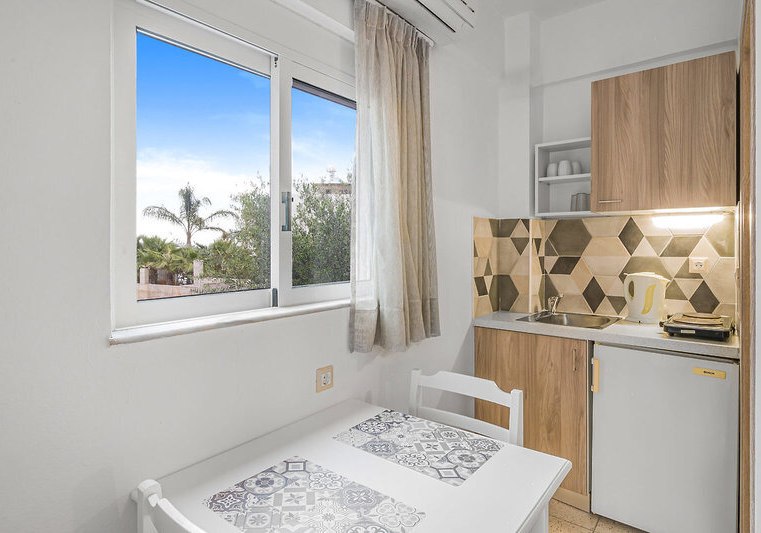 Happy Days Studios empfängt Euch in Malia auf Kreta mit einer klaren, unkomplizierten Atmosphäre, die vom Leben rund um die zwei Süßwasser-Außenpools getragen wird. Ihr richtet Euch in kompakten Studios und Apartments mit Kitchenette ein und genießt den praktischen Komfort von Balkon oder Terrasse sowie gefliesten Böden. Ohne Chichi, mit nützlichen Details wie Babybett ohne Aufpreis und einem Minimarkt im Haus, fühlt sich Euer Tag strukturiert und angenehm frei an.