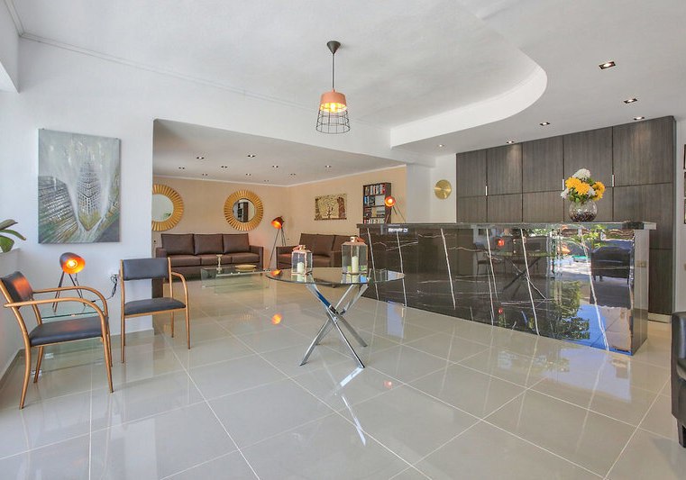 Ihr startet in den Tag auf der Sonnenterrasse, holt Euch an der Snackbar eine Erfrischung und plant Touren: das historische Malia, das touristische Zentrum und die Strände liegen nahe. Abends trefft Ihr Euch an der Bar oder Poolbar – alkoholfrei, konsequent und klar kommuniziert. Servicebereiche wirken übersichtlich: Rezeption, Lobby, Garten und Außenmöbel bündeln das soziale Leben. Highlight: Alkoholfreies Haus mit zwei Süßwasserpools und kompakten Studios für flexible Tagesplanung.