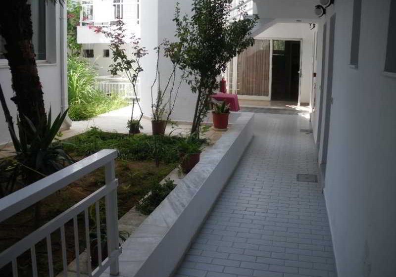 Hotel Anna Apartments empfängt Euch in einem kleinen Haus mit drei Etagen und 20 Zimmern, ruhig organisiert und angenehm überschaubar. Der Sandstrand liegt greifbar nah, der Pool schimmert im Garten, Sonnenschirme und Liegen sind vorbereitet. Ihr spürt einen unkomplizierten Rhythmus: ankommen, Taschen abstellen, kurz ins Wasser, dann auf die Terrasse – der Tag sortiert sich von selbst.