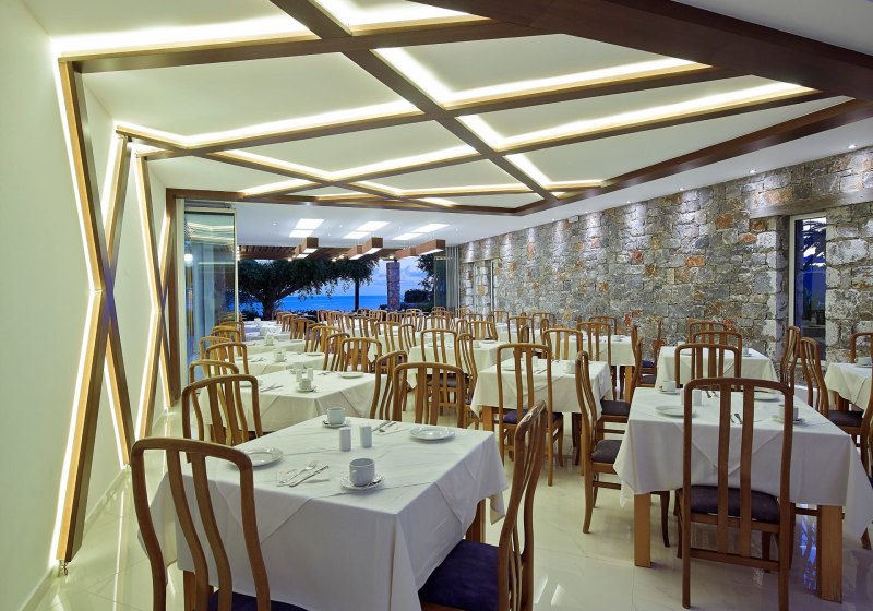 Das Restaurant mit Terrasse bildet Euren kulinarischen Fixpunkt. Ihr wählt zwischen Frühstück, Mittag- und Abendessen; Halbpension ist buchbar. Die Terrasse erweitert den Speiseraum ins Freie, ideal für den Start in den Tag oder ein spätes Dinner nach Stunden am Strand.