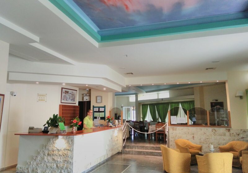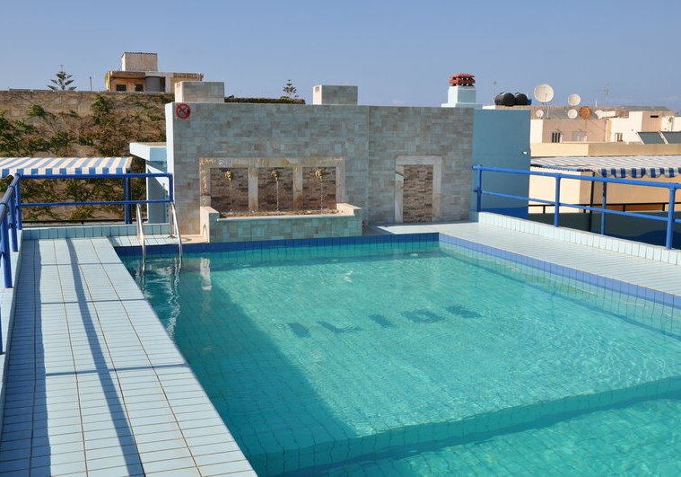 Das Hotel Ilios präsentiert sich funktional und übersichtlich. Rezeption, Lobby, TV-Raum und Aufzug strukturieren die Innenbereiche. WLAN nutzt Ihr kostenlos. Im Freien erwarten Euch ein Außenpool mit Liegen und Schirmen ohne Aufpreis sowie Garten- und Dachterrassenflächen für sonnige Pausen. Ein Minimarkt ergänzt die kurzen Wege im Haus.