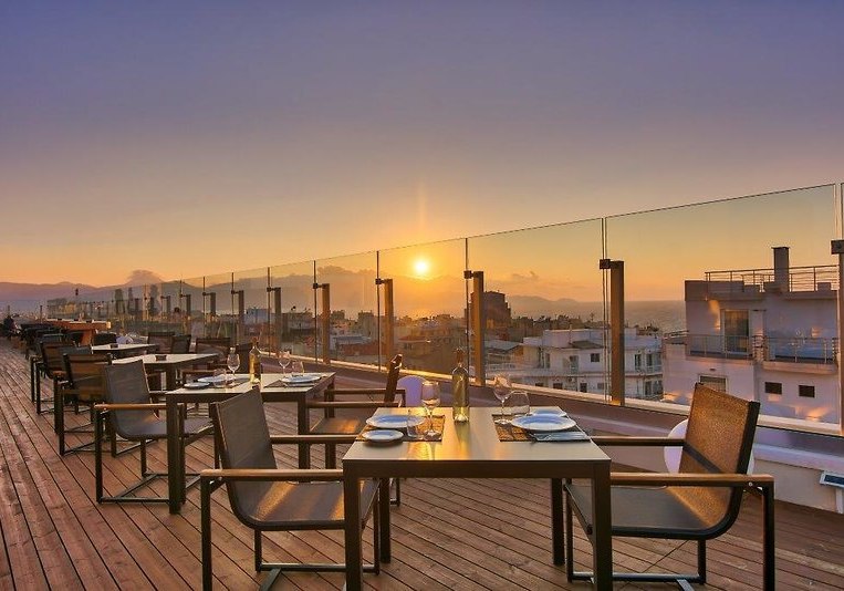 Ihr logiert im Zentrum von Heraklion auf Kreta, mit der Stadt direkt vor der Tür. Die Wege bleiben angenehm kurz: Zum Flughafen HER sind es etwa 4 Kilometer, was An- und Abreise schlank macht. Der nächste Strand liegt ungefähr 5 Kilometer entfernt, ideal für einen halbtägigen Ausflug, ohne den urbanen Takt zu verlassen. Durch die zentrale Lage öffnet sich Euch ein dichtes Netz an städtischer Infrastruktur – von Cafés bis zu Geschäften – während Services wie Mietwagen, Fahrradverleih, hoteleigener Shuttle und Transfers Euch mobil halten. Der Alltag der Hafenstadt prägt die Atmosphäre: lebendig, dicht, mit klaren Orientierungen entlang der Hauptachsen. Für Eure Planung bedeutet das: morgens bequem frühstücken, ein kurzer Transfer, danach direkt in die Stadt, und abends auf die Sky-Bar ausweichen – mit alkoholfreier Auswahl. Highlight: Stadtnahe Orientierungspunkte und kurze Distanzen halten Euren Tagesplan verlässlich schlank.