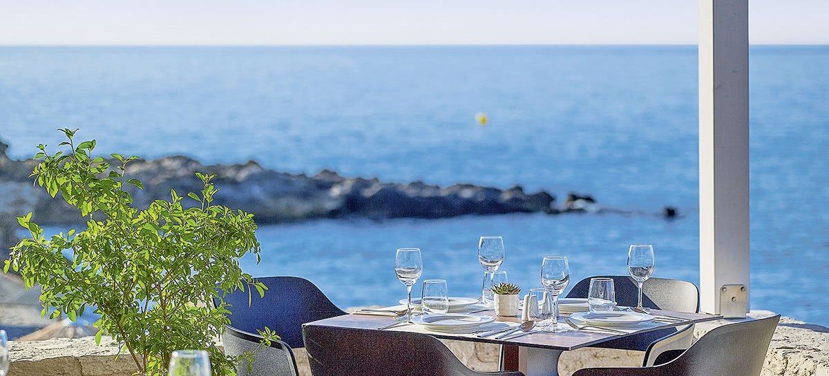 - Meerblick-Dinner: Hauptrestaurant mit Außenterrasse und freiem Blick auf das Meer.