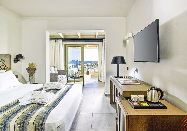 Als Gast nutzt Ihr zusätzlich die Einrichtungen des Schwesterhotels Kakkos Bay, vom Empfangsbereich bis zu Pools und Strand. 65 Zimmer und die offizielle 5-Sterne-Landeskategorie sorgen für einen gepflegten Rahmen. Hier genießt Ihr Privatsphäre, klare Strukturen und die Nähe zum Meer im Urlaub.