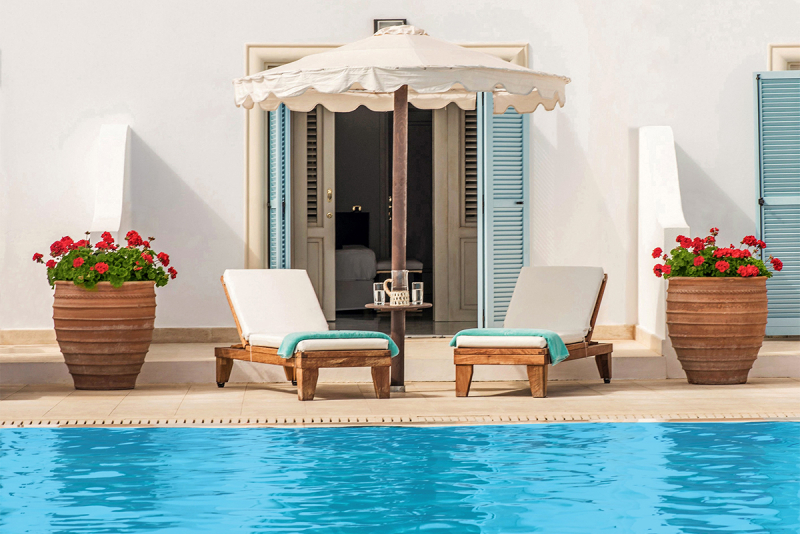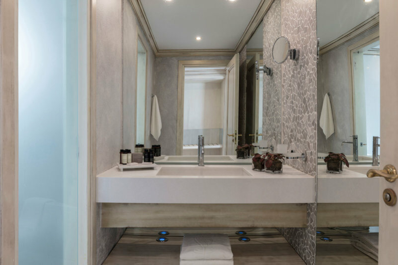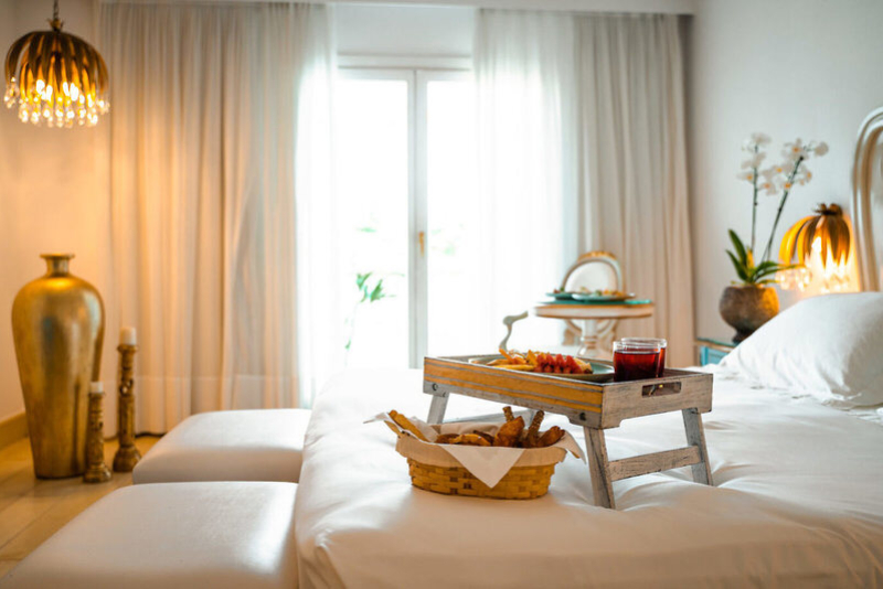 Die Zimmer des Hotels sind umfassend ausgestattet und bieten verschiedenste Annehmlichkeiten. Dazu gehören u.a. ein privates Bad, eine Klimaanlage, eine Minibar, kostenfreies WLAN, eine Nespresso-Maschine und eine individuell regulierbare Klimaanlage. Einige Zimmerkategorien verfügen zudem über einen Balkon oder eine Terrasse mit Meer- oder Gartenblick, und besonders luxuriöse Unterkünfte bieten zusätzlich einen eigenen Whirlpool oder einen privaten Pool.
