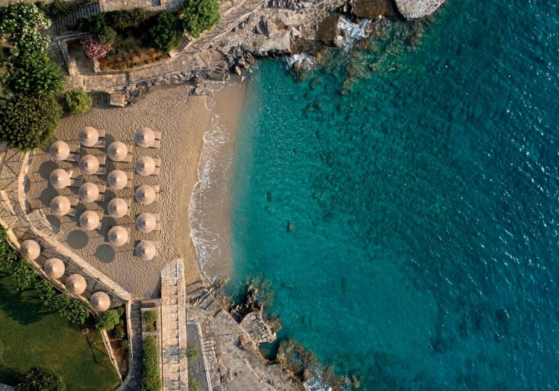- Privatstrand: Eigener Strandabschnitt mit Liegen, Schirmen und Tüchern inklusive.