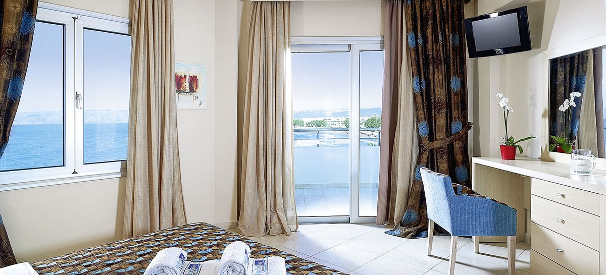 Die Zimmer sind funktional und auf Erholung am Meer ausgerichtet: Balkon, Klimaanlage, TV und Telefon gehören zur Grundausstattung. Ein Safe ist gegen Gebühr verfügbar, dazu Kaffee- und Teezubereiter. Bad oder Dusche, teils mit Badewanne, sowie Pflegeartikel und Haartrockner runden das Setup ab.