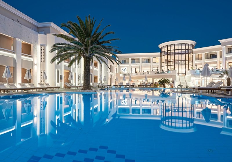 Mythos Palace Resort & Spa steht für direkte Strandlage mit Blauer Flagge, klare Gastronomievielfalt und ein strukturiertes Aktivprogramm von Yoga bis Wassersport. Familien profitieren von Kinderpool, Spielplatz, Miniclub und Minidisco, Paare von Beachfront-Optionen und Private-Dining-Momenten.