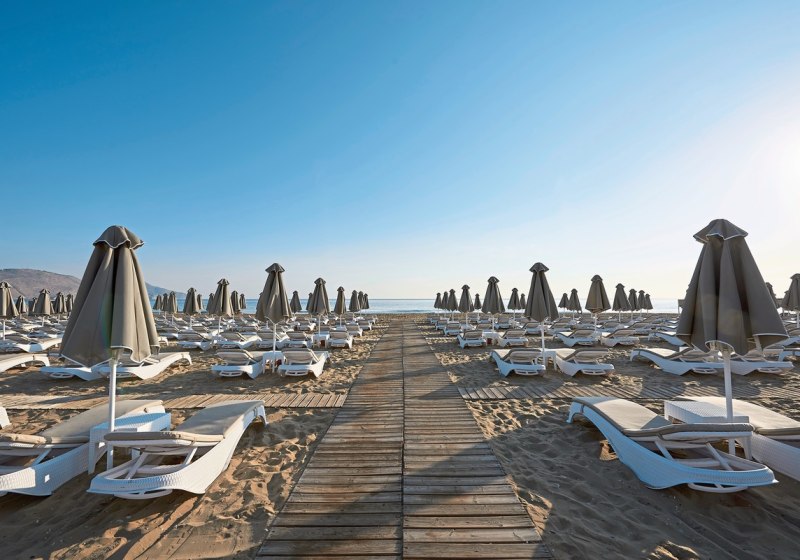 Familien finden mit Kinderpool, Spielplatz, Miniclub und Minidisco einen strukturierten Rahmen. Aktivurlauber trainieren im Fitnessraum oder auf dem Padelplatz, während Genussmenschen zwischen Haupt-, Themen- und Strandrestaurant wählen. Am Strand warten mietbare Gazebos für ruhige Stunden. Highlight: Direkte Strandlage mit Blauer Flagge, kurz und komfortabel erreichbar.