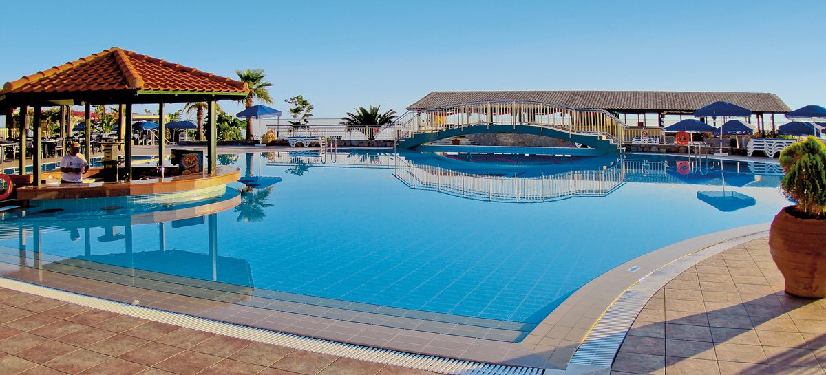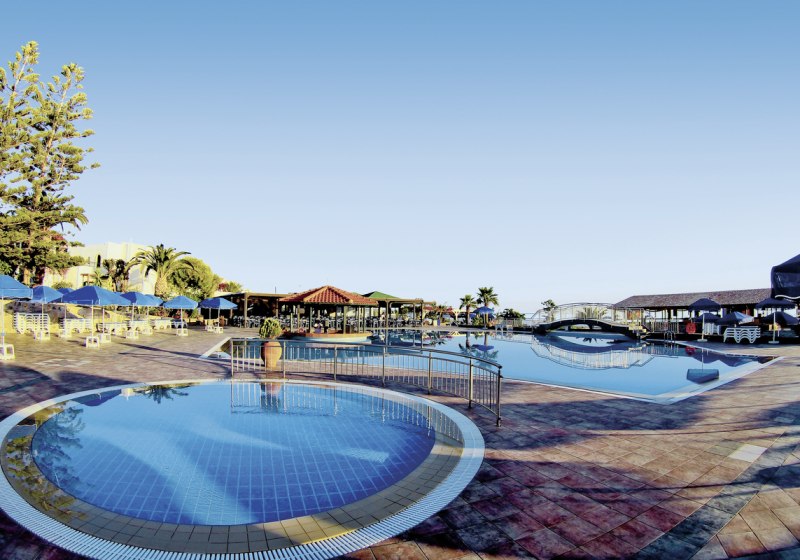 Unter freiem Himmel erwarten Euch sieben Außenpools, Wasserpark mit Rutschen und ein Kinderpool. Liegestühle und Sonnenschirme stehen am Strand wie an den Pools. Mit Rezeption, Gepäckaufbewahrung und Transferservice steuert Ihr An- und Abreise entspannt. Highlight: Wasserpark und sieben Pools verteilen Aktivitäten und Ruhezonen.