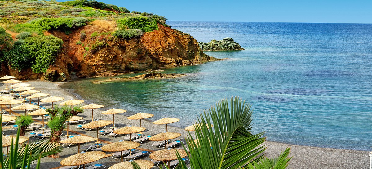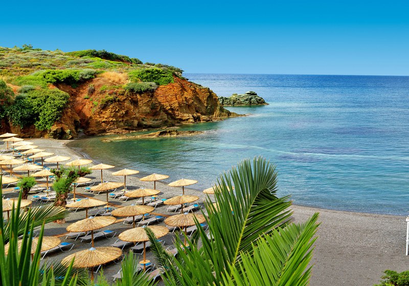 Auf einer privaten Halbinsel bei Agia Pelagia kombiniert Out Of The Blue Resort direkte Strandlage mit einer üppigen Gartenkulisse. Der hoteleigene Sand-/Kiesstrand bietet Liegen und Sonnenschirme, dazu eine Strandbar. Vor dem Hotel liegt eine Bushaltestelle mit Verbindung nach Heraklion in rund 22 Kilometern; der Flughafen ist etwa 25 Kilometer entfernt. Ein hoteleigener Shuttleservice und Transferservice ergänzen die Anbindung. Highlight: Direkter Zugang zum Strand mit komfortabler Infrastruktur.