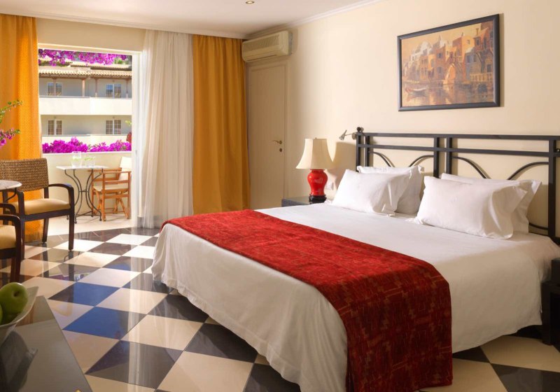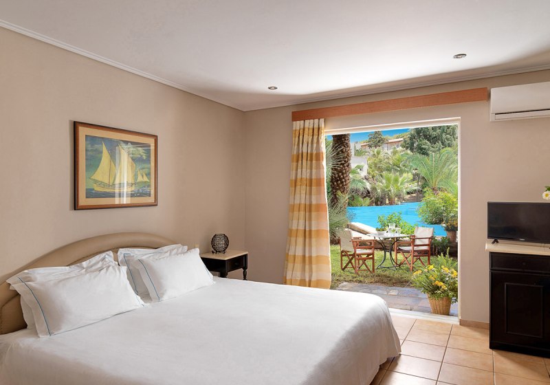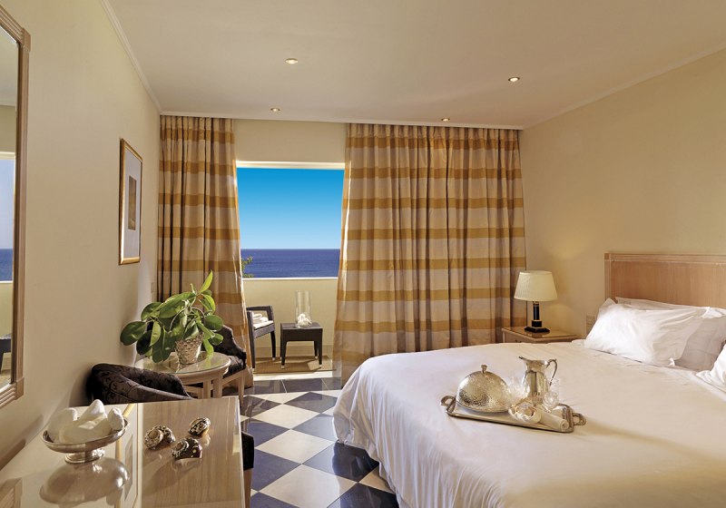 Die Zimmerausstattung ist durchdacht: Klimaanlage, WLAN, Flachbild‑Sat‑TV, Safe sowie Kaffee‑/Teezubereiter sind Standard. Die Bäder verfügen über Badewanne oder Dusche/WC und Föhn, viele Einheiten eröffnen mit Balkon den Blick ins Grüne oder aufs Meer. Ausgewählte Kategorien bieten Whirlpoolwanne, Whirlpool auf dem Balkon, Sharingpool oder privaten Pool. Highlight: Wahl zwischen klassischen Zimmern und wasserbezogenen Kategorien.