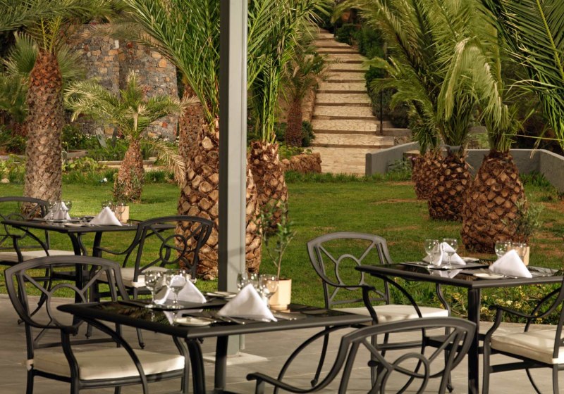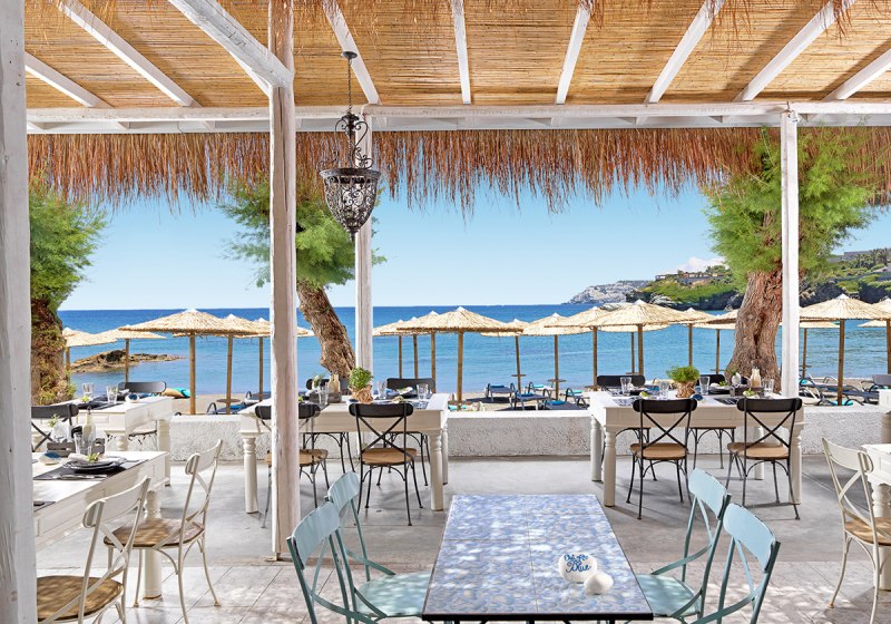 Out Of The Blue Resort vereint private Halbinsel, hoteleigenen Sand-/Kiesstrand und einen 167.000 m² großen botanischen Garten. Vier Pools, drei Wasserrutschen, ein Kinderlagunenbecken und der 4.000 m² große Minoan Amusement Club setzen klare Akzente für Familien und Strandurlauber. Internationale Animation, griechische Abende und Live-Musik runden die Stimmung ab.