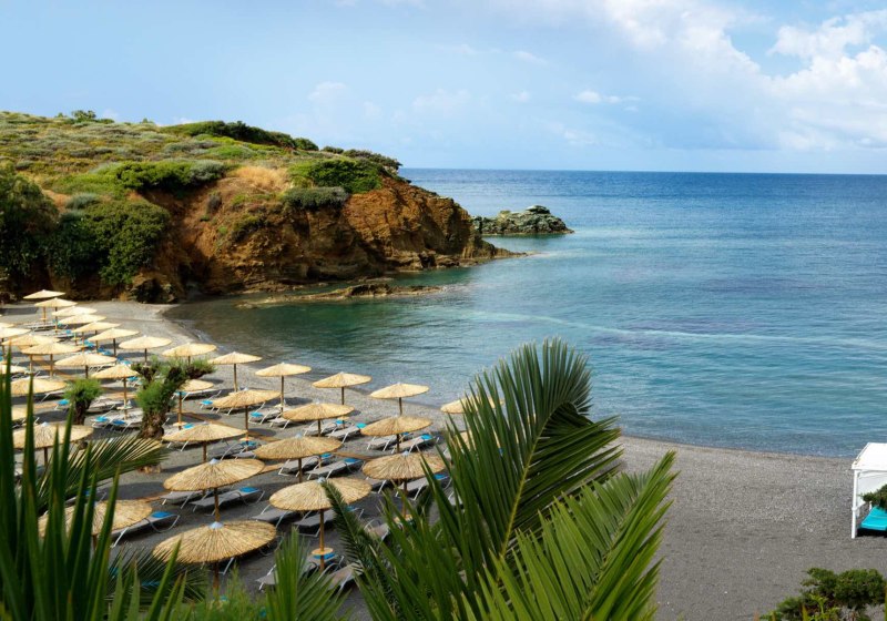 „Für euren perfekten Urlaub auf Kreta empfiehlt sich Out Of The Blue Resort mit privater Halbinsel, großem botanischem Garten, vier Pools, Wasserrutschen und eigenem Strand – vielseitig für Familien, Strandurlauber und Aktivaktive.“