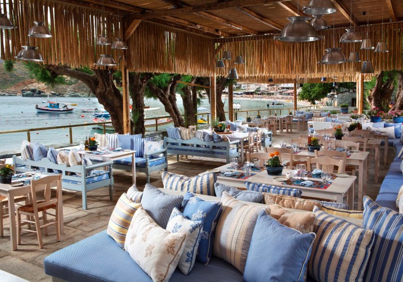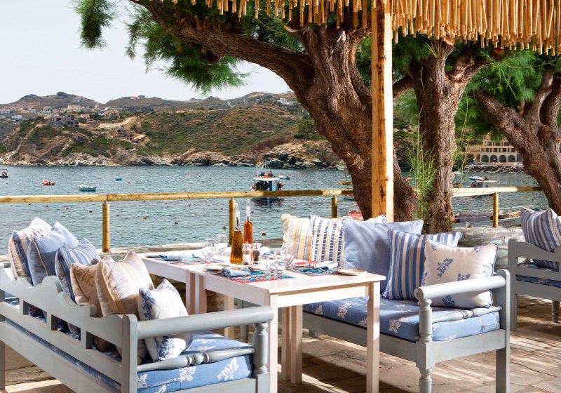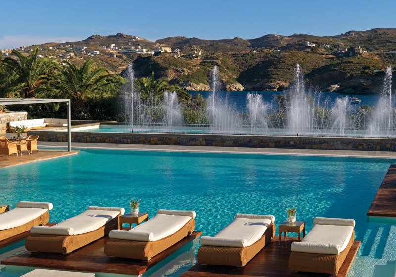 Out Of The Blue Resort liegt auf einer privaten Halbinsel bei Agia Pelagia und ist von einem botanischen Garten umgeben, der sich über 167.000 m² erstreckt. Hier erlebt Ihr die Ruhe des hoteleigenen Sand-/Kiesstrands und die Weitläufigkeit gepflegter Wege zwischen Pools, Terrassen und Grünflächen. Das Ambiente wirkt entspannt, mit klarer Struktur und viel Platz für Familien, Paare und alle, die naturnahe Abwechslung schätzen. Highlight: Private Halbinsel mit großem Garten und Strandzugang, ideal zum Durchatmen.