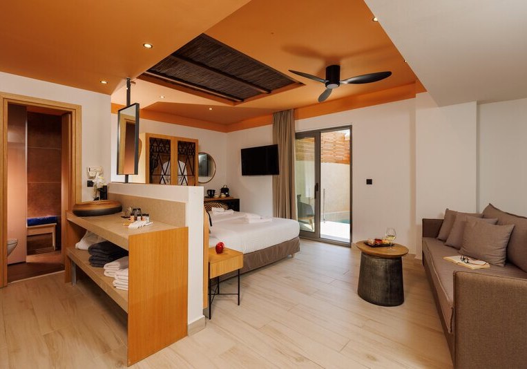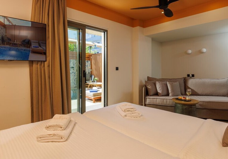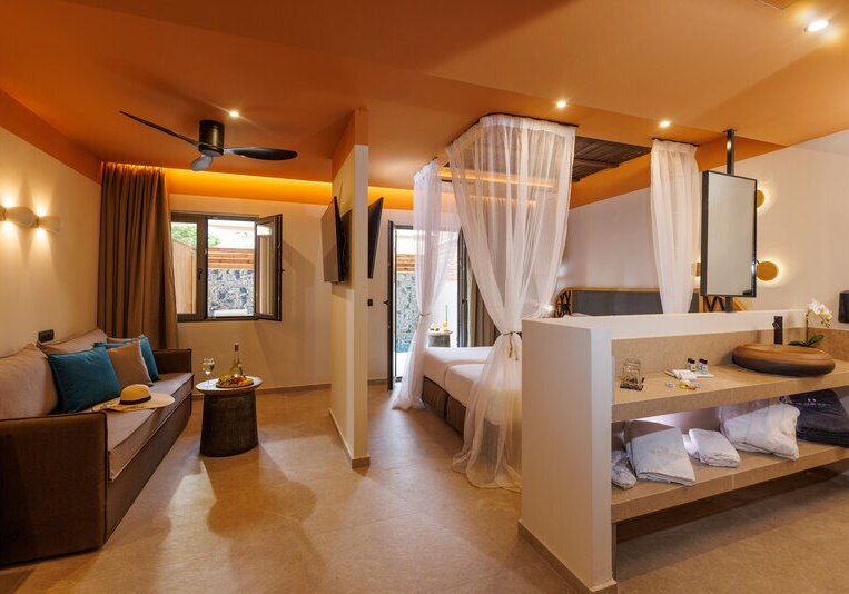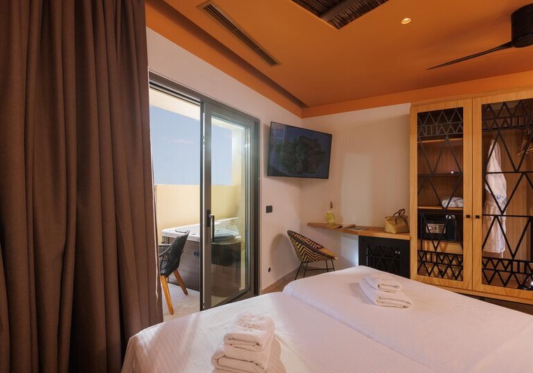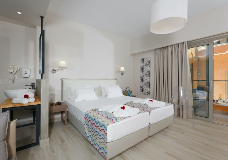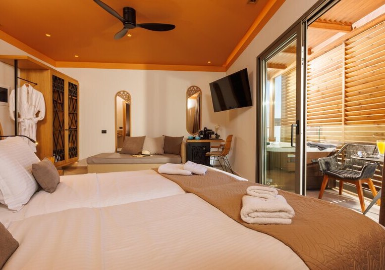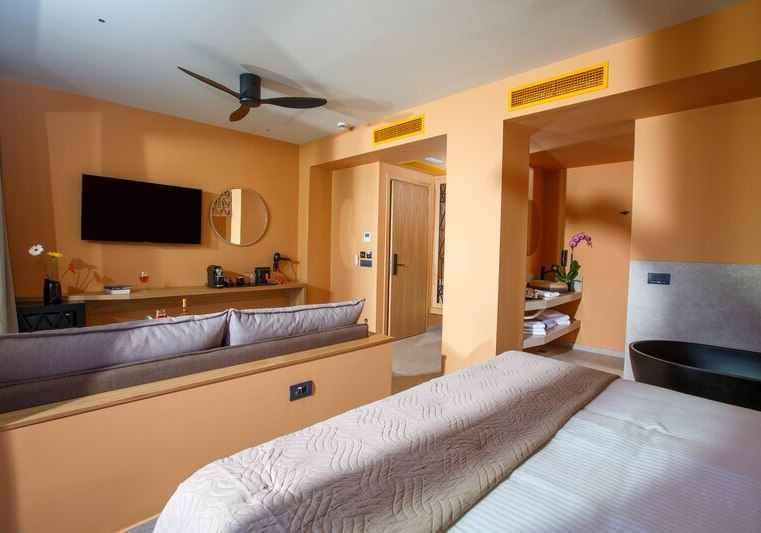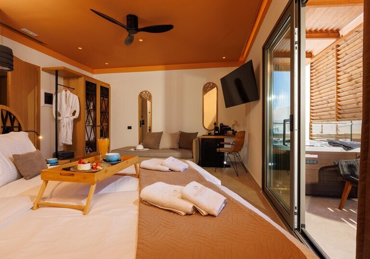 Superior Zimmer bringen Kaffee-/Teezubereiter, Bademäntel, Badetücher und Slipper mit. Die Kategorie Superior Whirlpool bietet einen eigenen Whirlpool. In der Deluxe Superior Suite ergänzt ein Whirlpool und ein Hamam; Bügeleisen und -brett sind ausgewiesen. Familienzimmer sind für bis zu vier Personen vorgesehen – ideal, wenn Ihr mit großen Kindern reist.