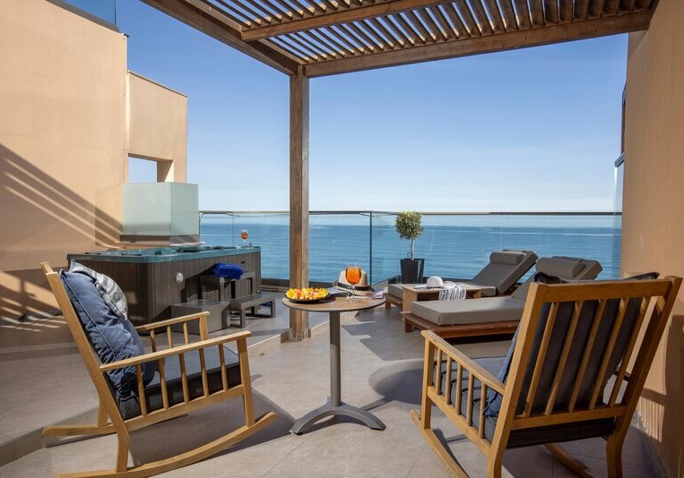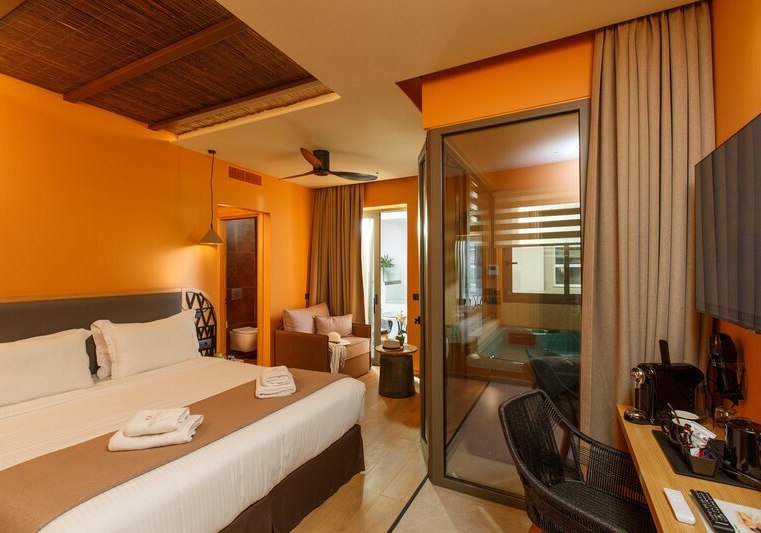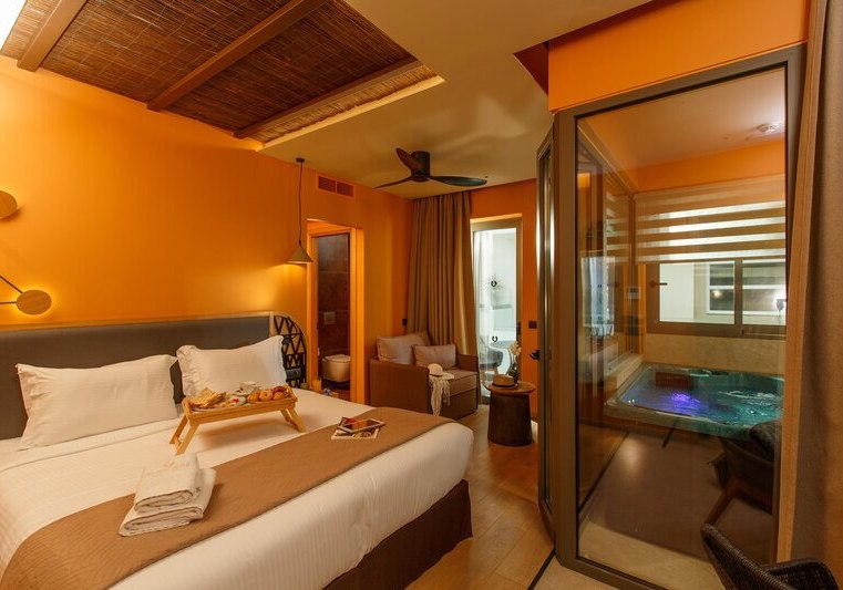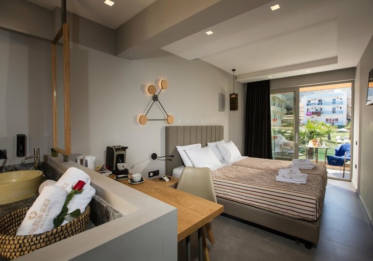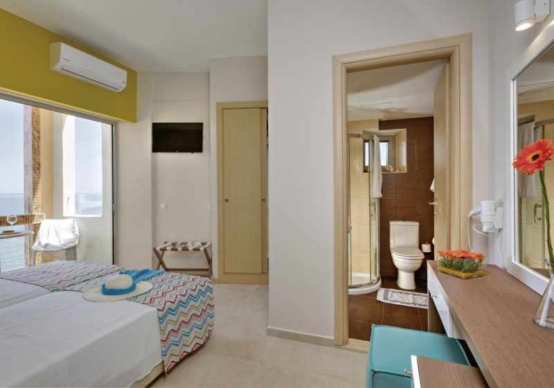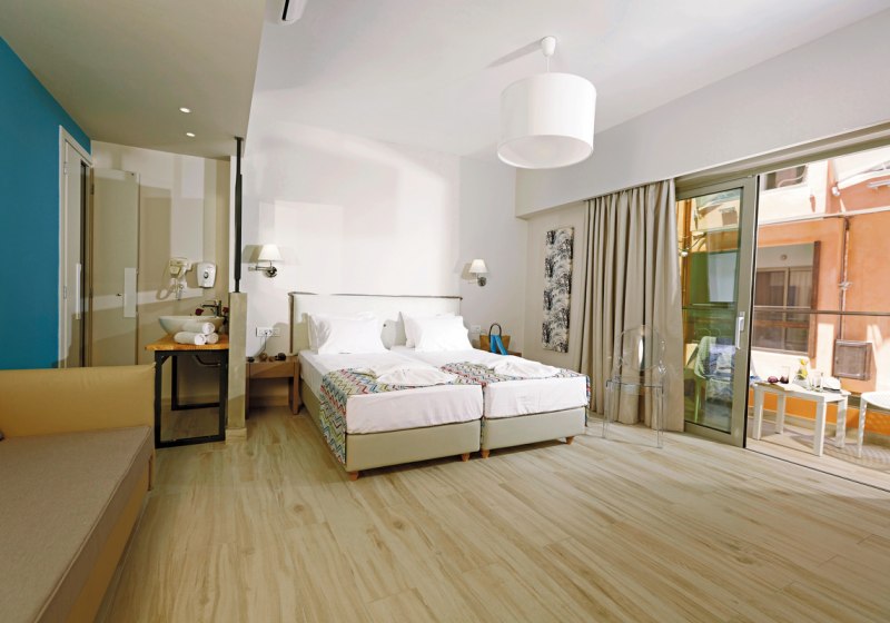 Im Palmera Beach Hotel & Spa wohnt Ihr direkt am Meer und nur wenige Meter von einer Badebucht entfernt, getrennt durch eine Straße. Das Haus richtet sich als Adults-only-Hotel an Reisende ab 15 Jahren. Das Ambiente wirkt klar strukturiert: moderne Gemeinschaftsbereiche, WLAN in allen Bereichen und Zimmern sowie eine 24-Stunden-Rezeption geben Euch einen verlässlichen Rahmen. Highlight: Adults-only-Hotel ab 15 Jahren in direkter Meerlage mit kurzer Distanz zur Badebucht.