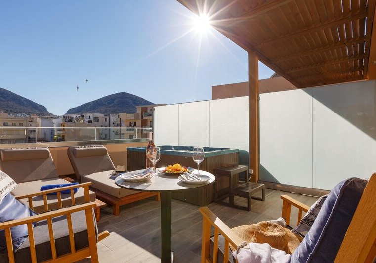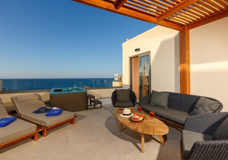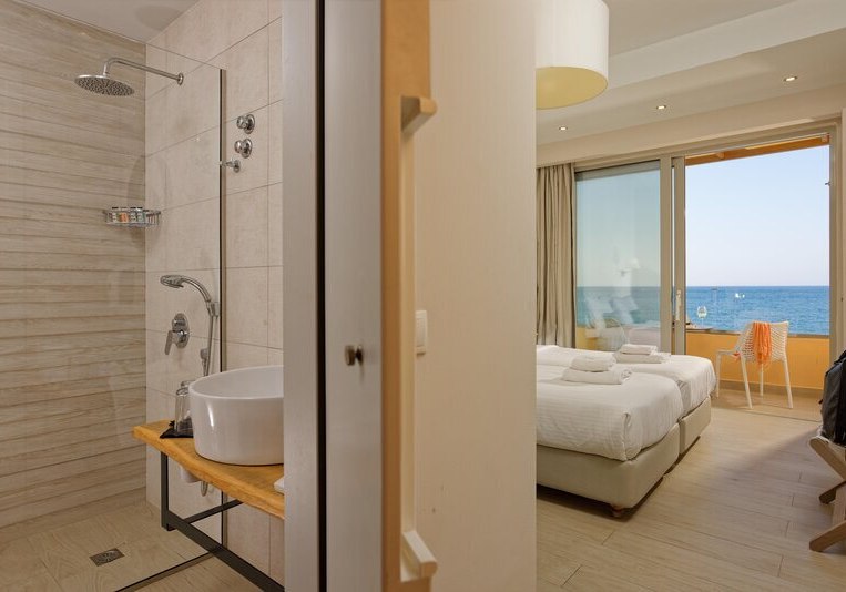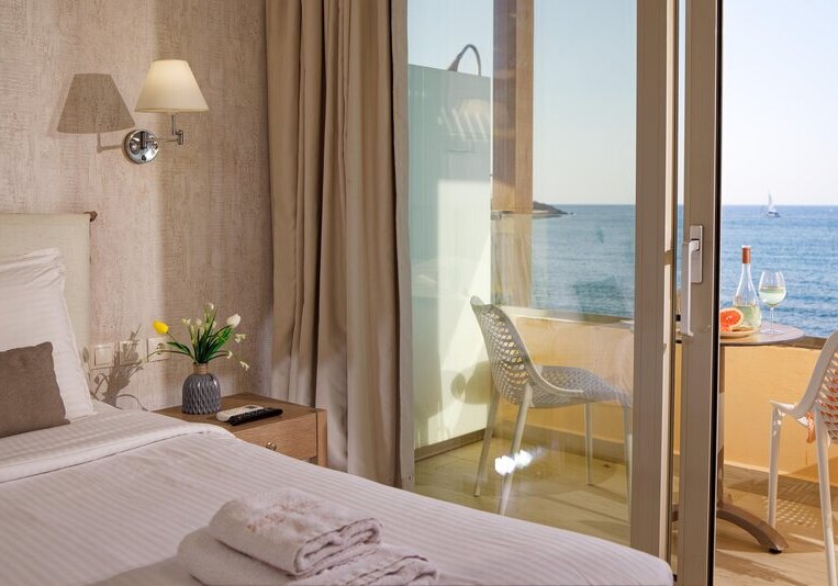 Die Lage punktet mit Nähe zum Wasser: Ihr wohnt direkt am Meer, die Badebucht erreicht Ihr nach wenigen Metern, getrennt durch eine Straße. Einkaufsmöglichkeiten und Unterhaltung liegen in der Umgebung, ein Restaurant befindet sich in etwa 50 Metern Distanz. Zum Flughafen Heraklion sind es rund 24 Kilometer. Öffentliche, kostenfreie Parkplätze in der Nähe erleichtern Eure Mobilität.