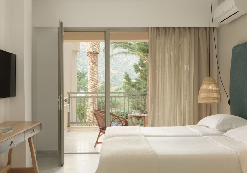 Zimmer und Suiten sind funktional ausgestattet: Balkon oder Terrasse, Bad oder Dusche/WC, Föhn, Pflegeprodukte und Spiegel, kostenloses WLAN sowie 42-Zoll-LED-TV. Safe und Minikühlschrank sind integriert, Kaffee-/Teestation mit Wasserkocher sorgt für kleine Pausen zwischendurch.
